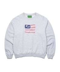 USA FLAG APPLIQUE SWEATSHIRT - LIGHT GRAY
