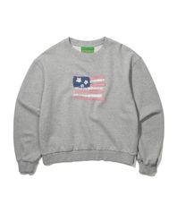 (W) USA FLAG APPLIQUE SWEATSHIRT - GRAY