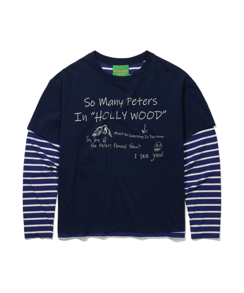 HOLLYWOOD LAYERED LONG SLEEVE T-SHIRT - NAVY