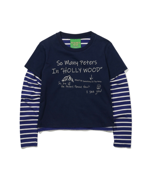 (W) HOLLYWOOD LAYERED LONG SLEEVE T-SHIRT - NAVY