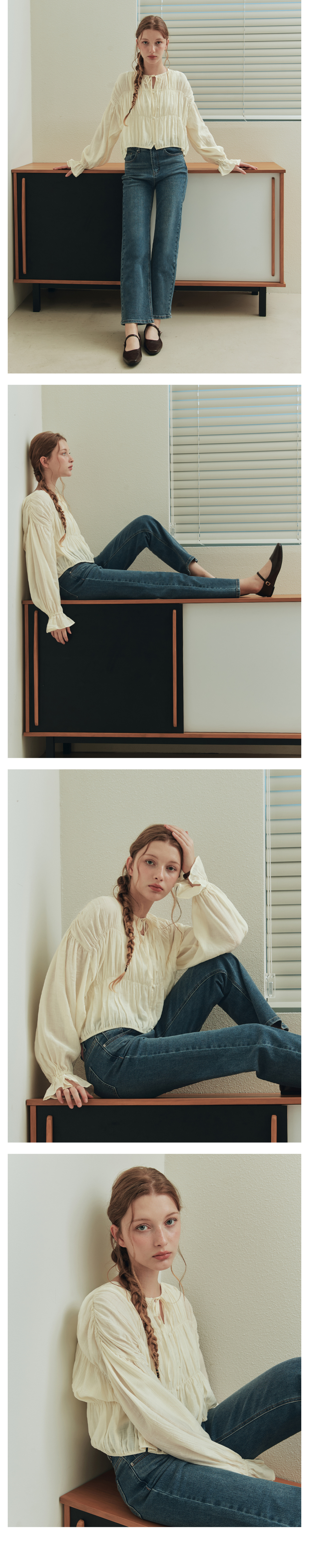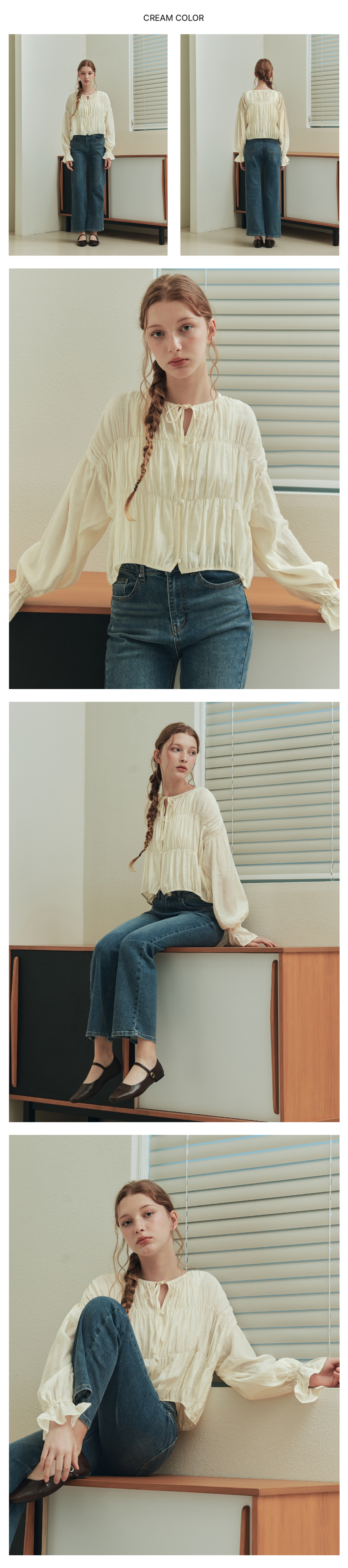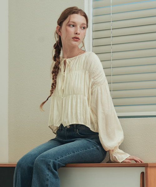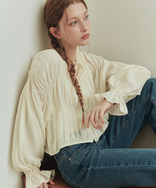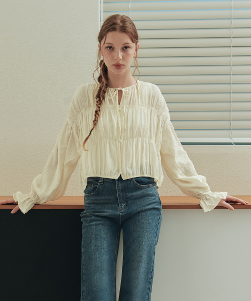버니 셔링 블라우스 / 크림