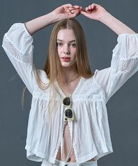 [CP] 브이넥 보헤미안 자수 셔링 리본 블라우스 [WHITE] KCL.