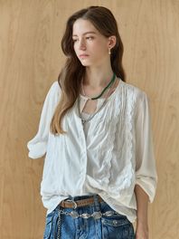 핀턱 레이스 라운드넥 셔츠 블라우스