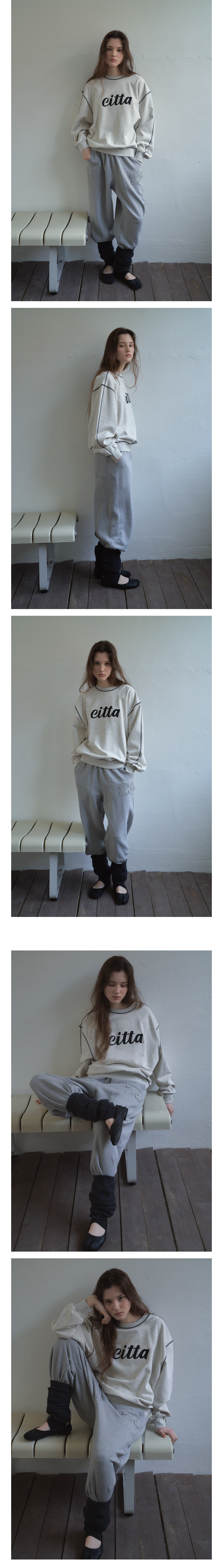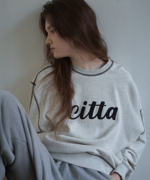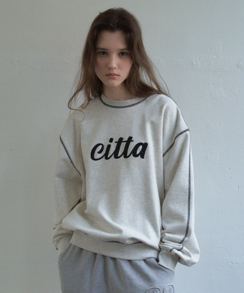 시그니처 체인 스티치 로고 스웻셔츠_CTT309(오트밀)
