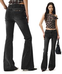 Zip Pocket Slim Low Rise Flared Jeans DCWPT021BLACK