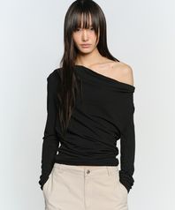 COWL NECK LONG SLEEVE TOP, BLACK