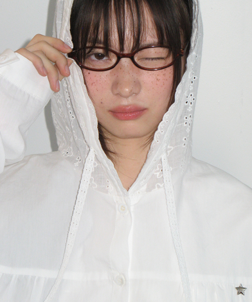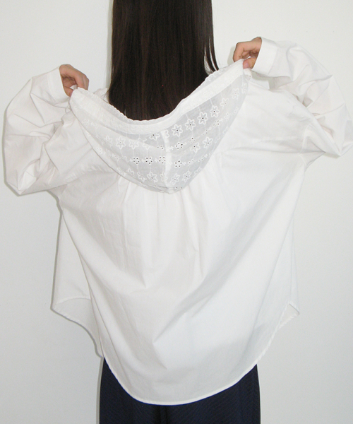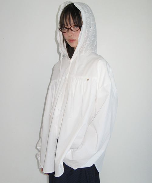 LACE HOODED OVER FIT SHIRT WHITE