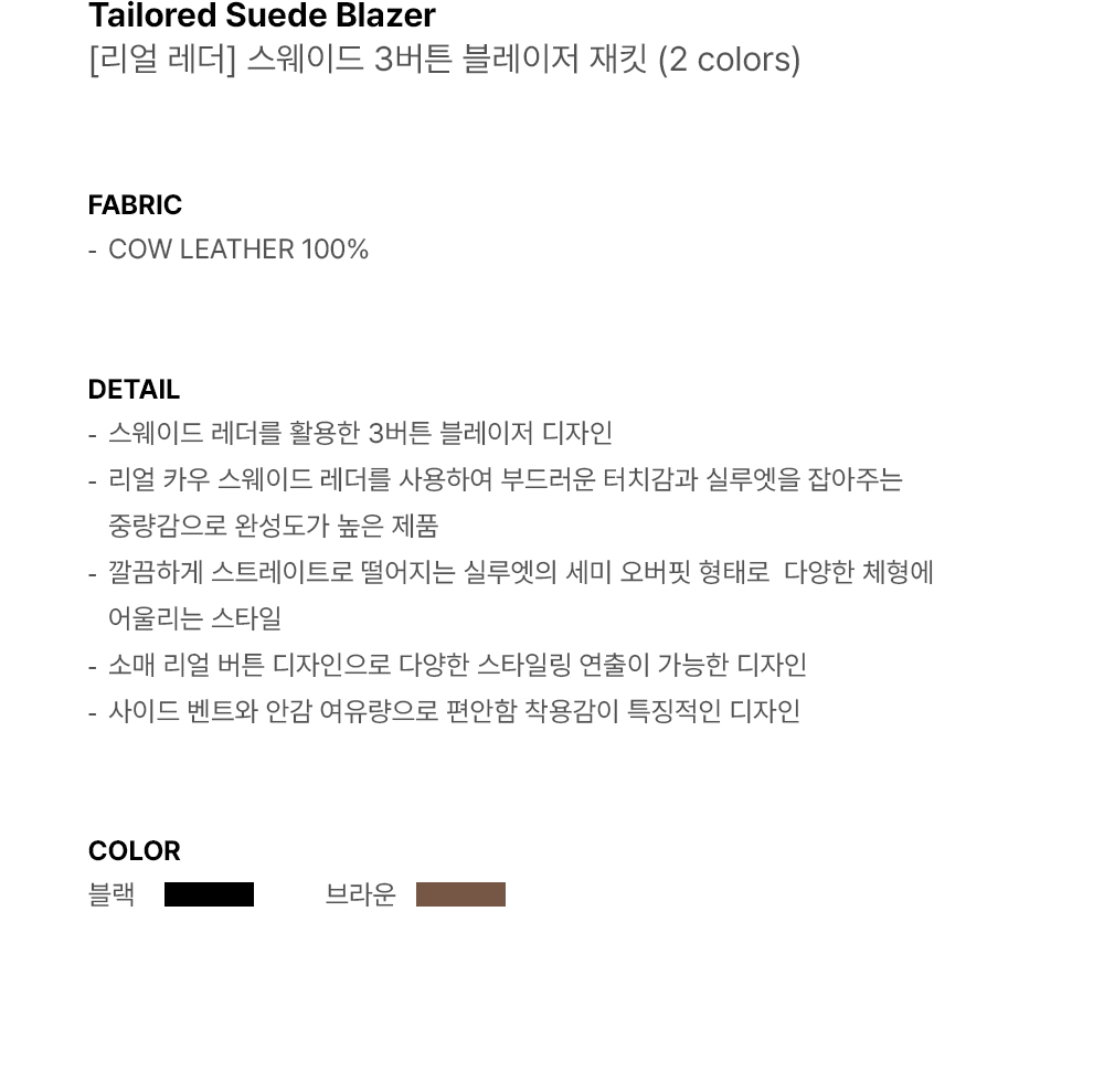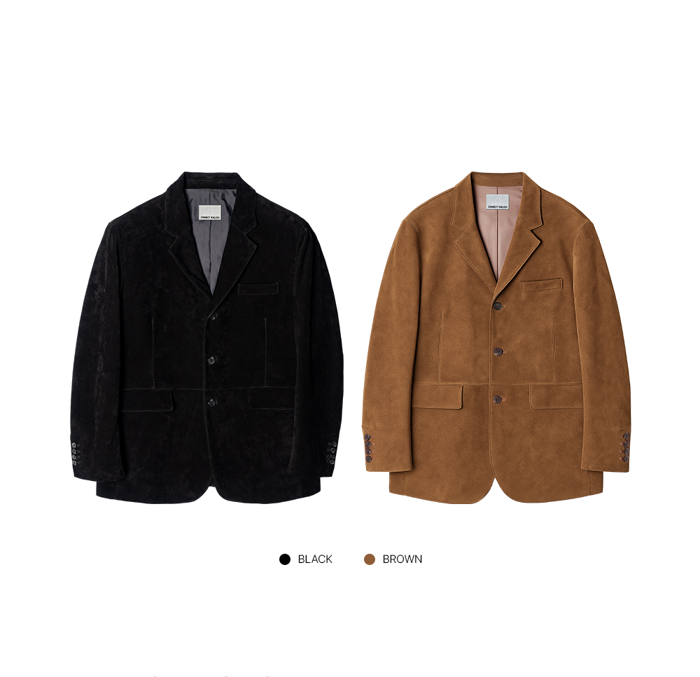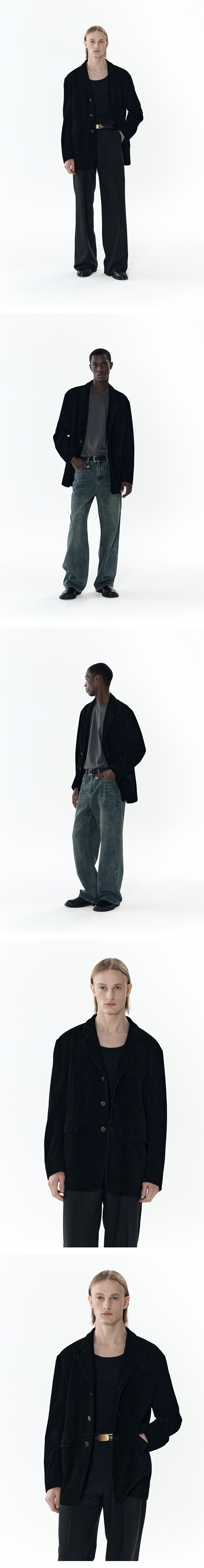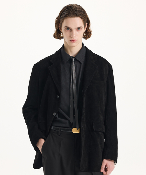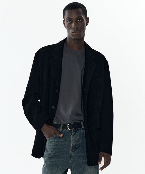 [리얼 레더] 스웨이드 3버튼 블레이저 재킷 [블랙]