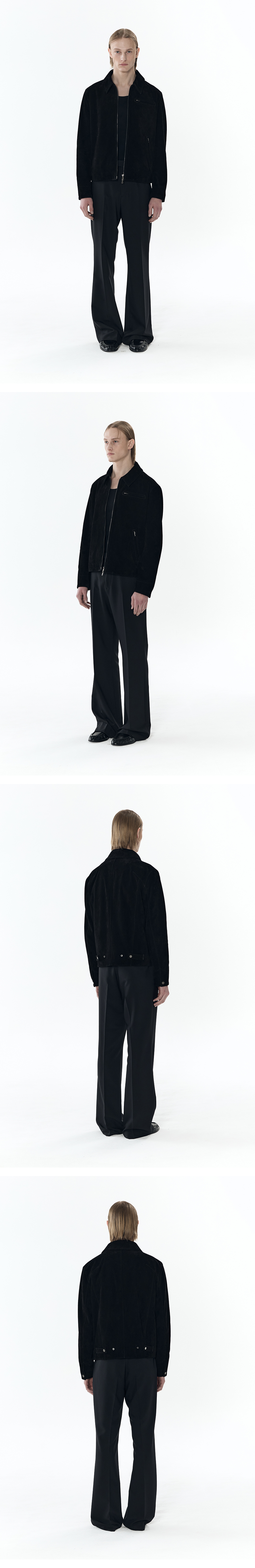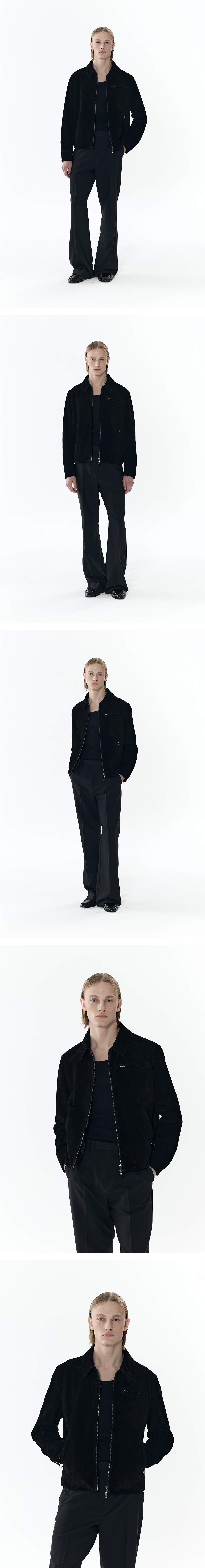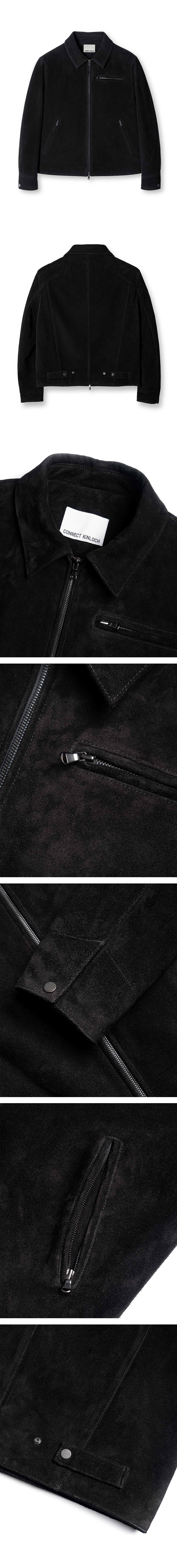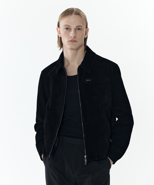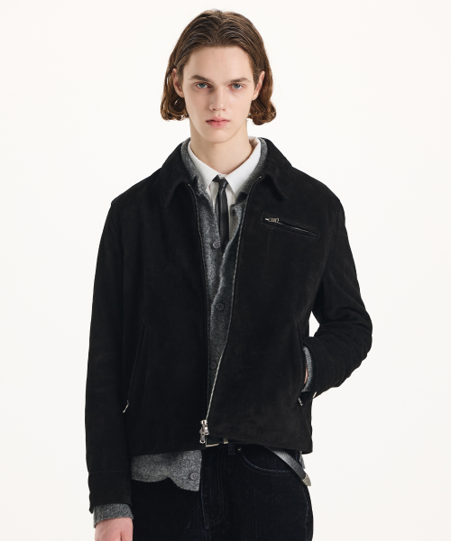[리얼 레더] 스웨이드 레이서 집업 재킷 [블랙]