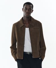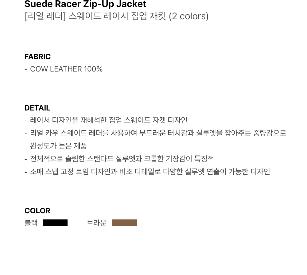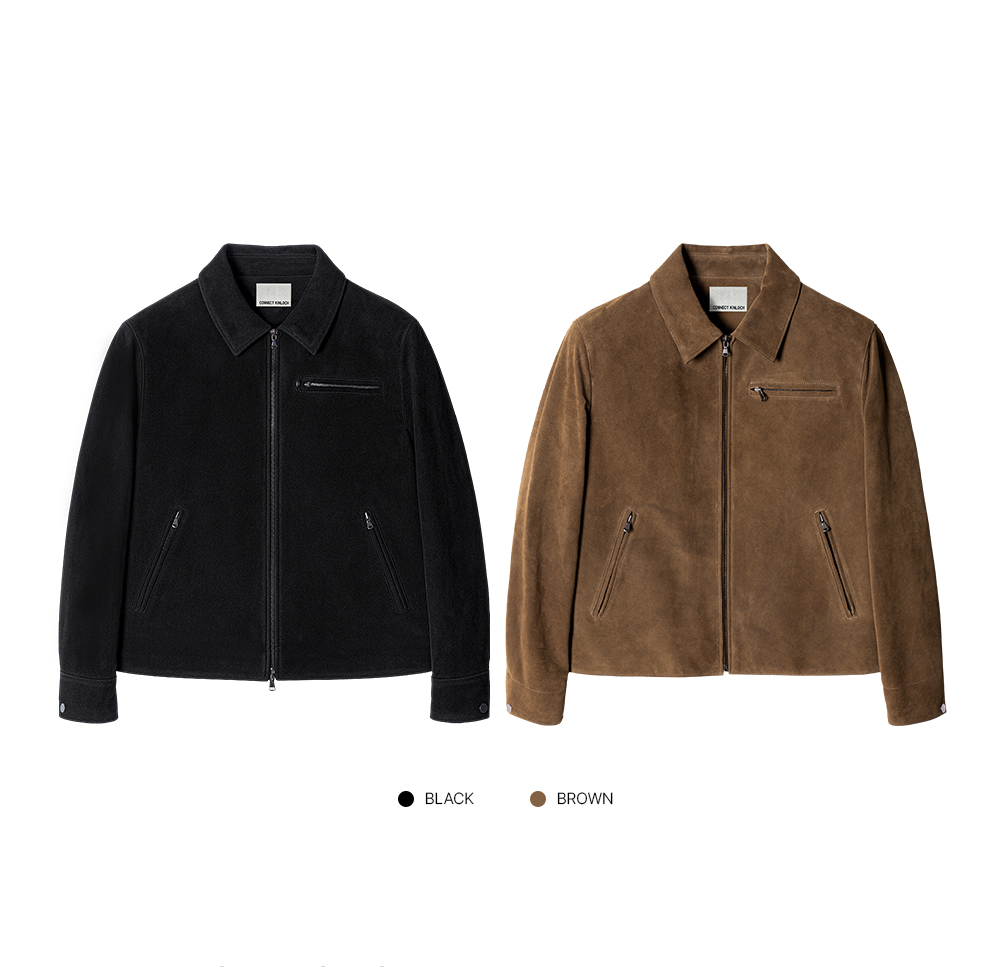 [리얼 레더] 스웨이드 레이서 집업 재킷 [브라운]