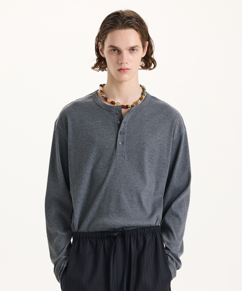 립 헨리넥 롱슬리브 티셔츠 [다크그레이]