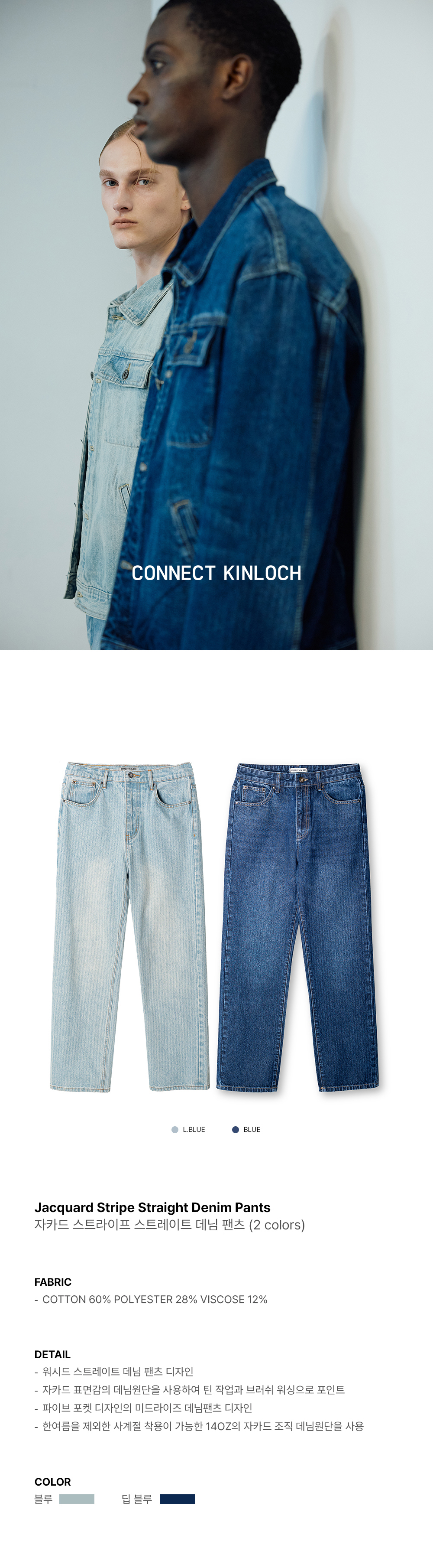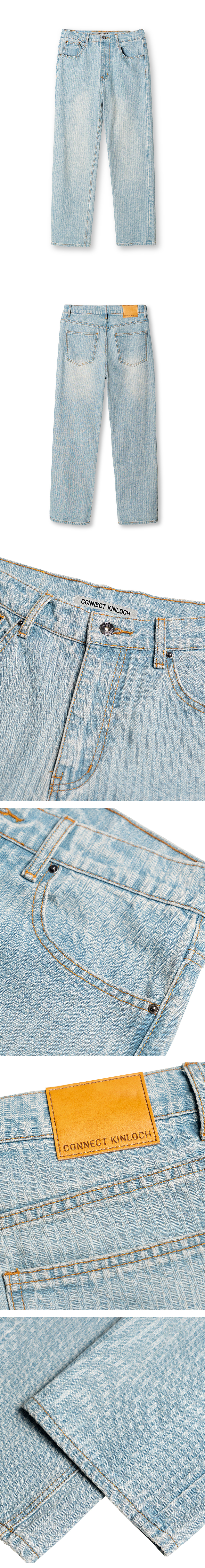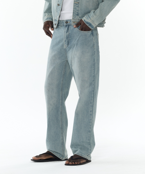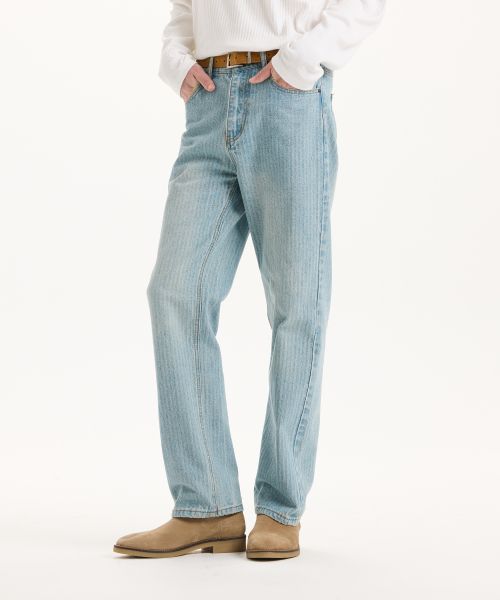 자카드 스트라이프 스트레이트 데님 팬츠 [라이트블루]