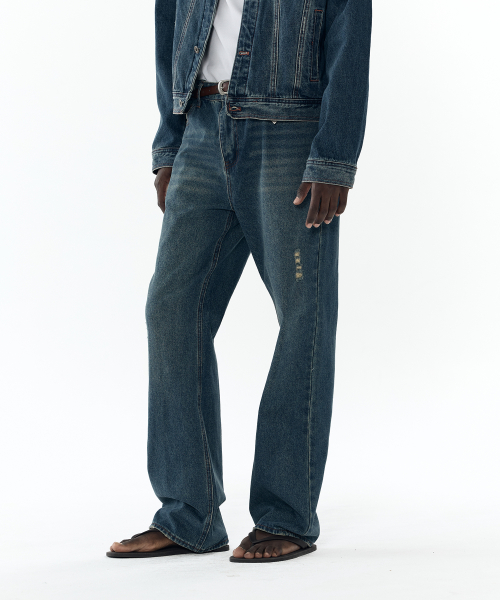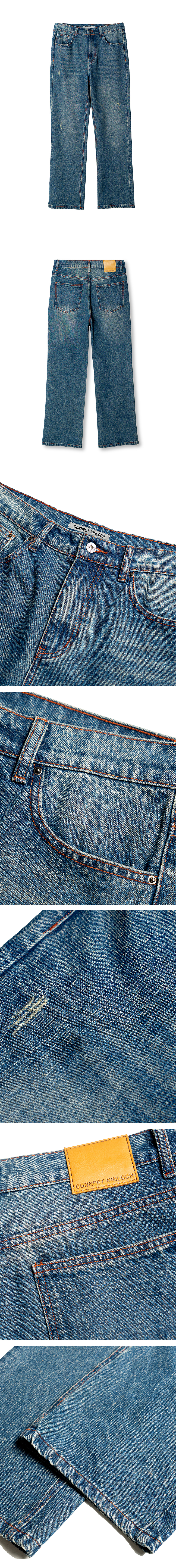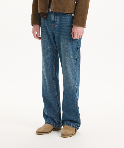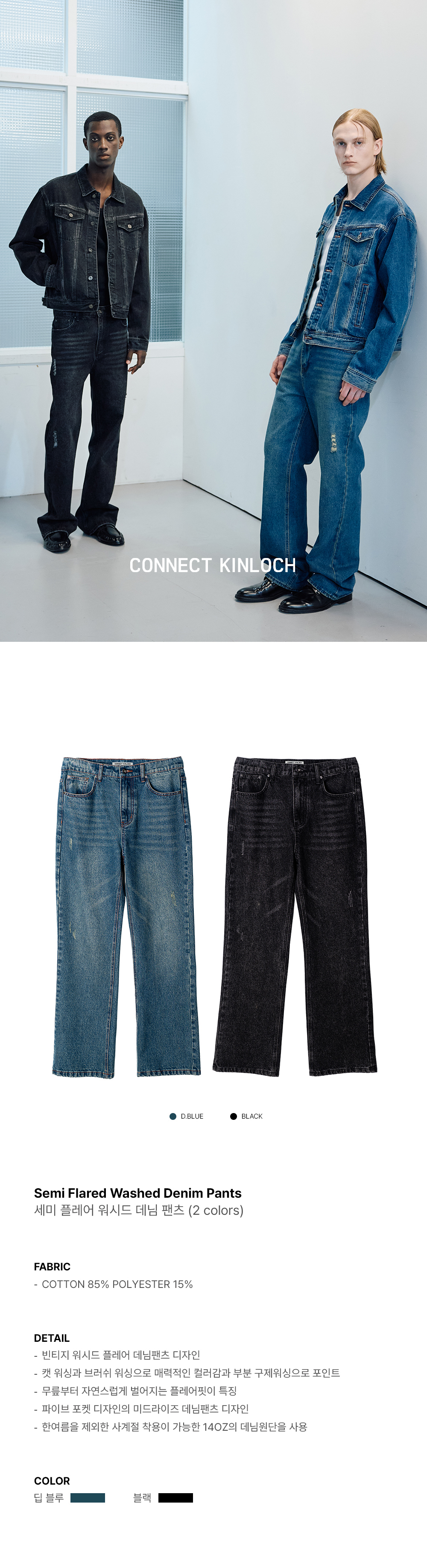 세미 플레어 워시드 데님 팬츠 [딥블루]
