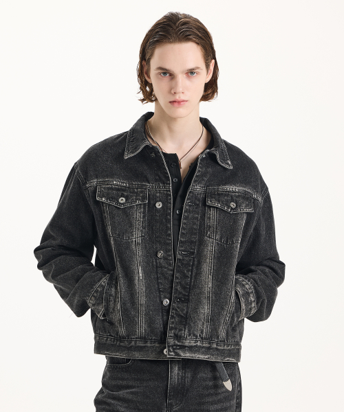 릴렉스드 데님 트러커 재킷 [워시드 블랙]