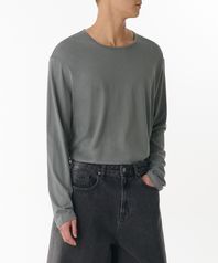 릴렉스드 라이트웨이트 CR 스쿱 넥 긴소매 티셔츠 [카키 그레이]