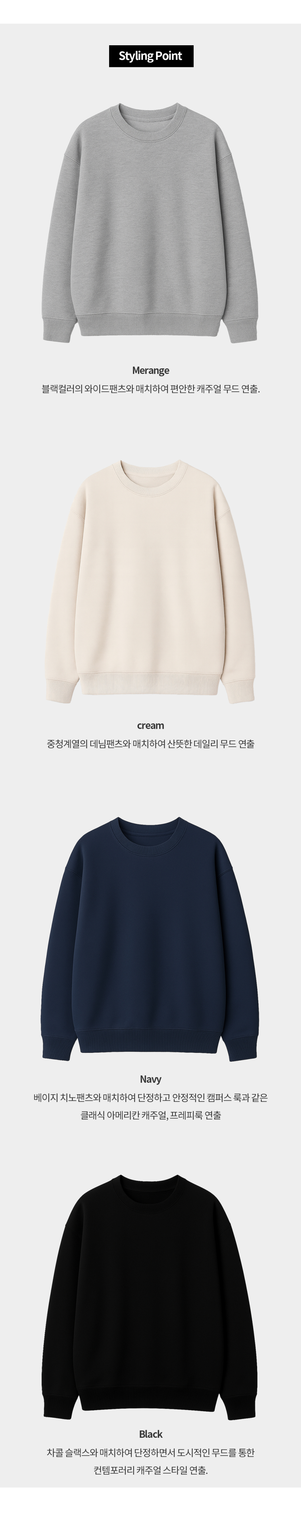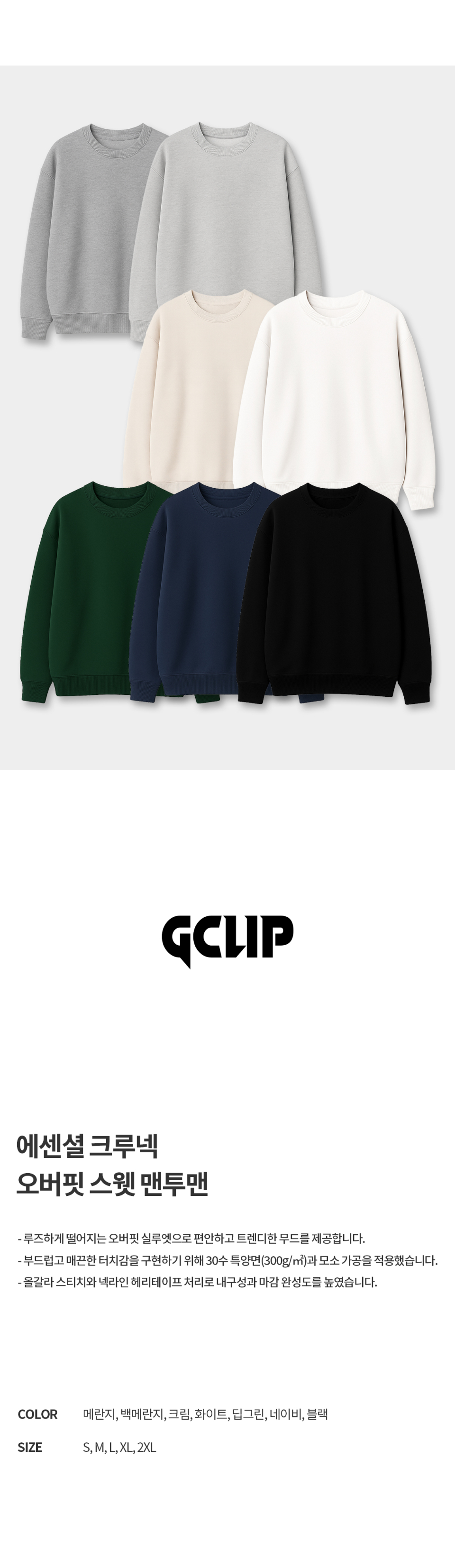 에센셜 크루넥 오버핏 스웻 맨투맨 티셔츠 7Color