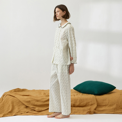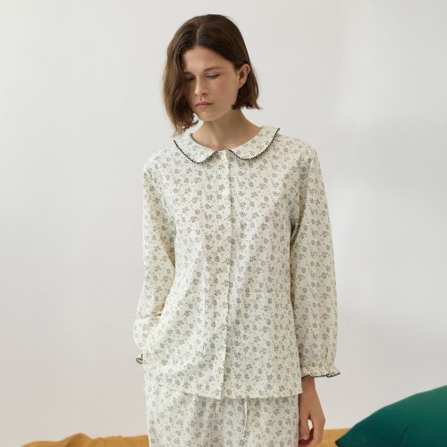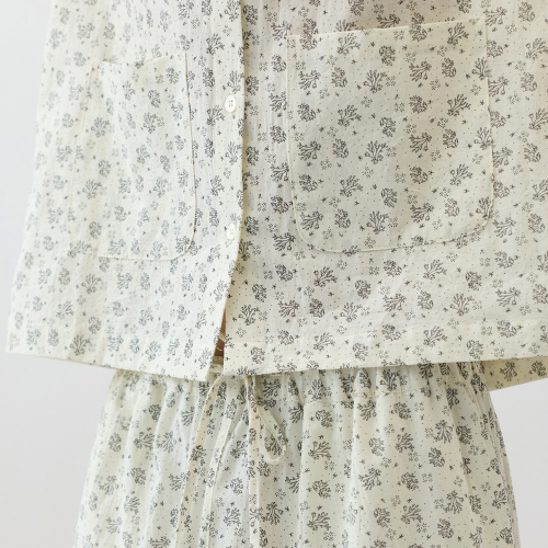 캡 내장 스토크 플라워 여성 잠옷 세트
