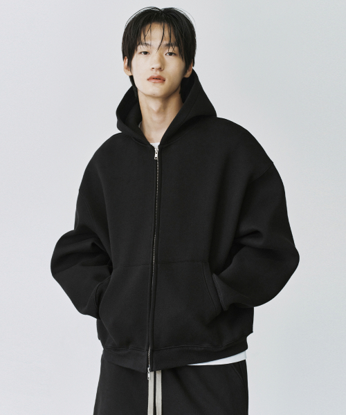 엑스트라 오버사이즈 후디드 스웨트 집업 [블랙]