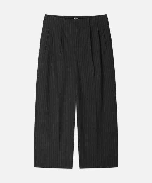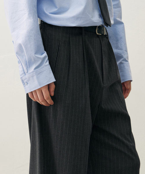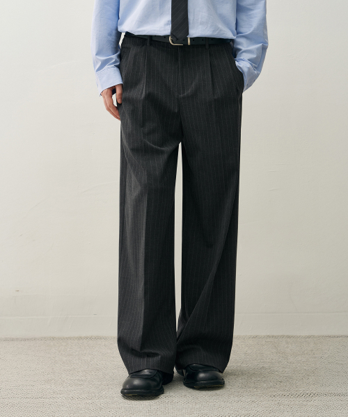 투 턱 와이드 핀 스트라이프 슬랙스 [CHARCOAL]