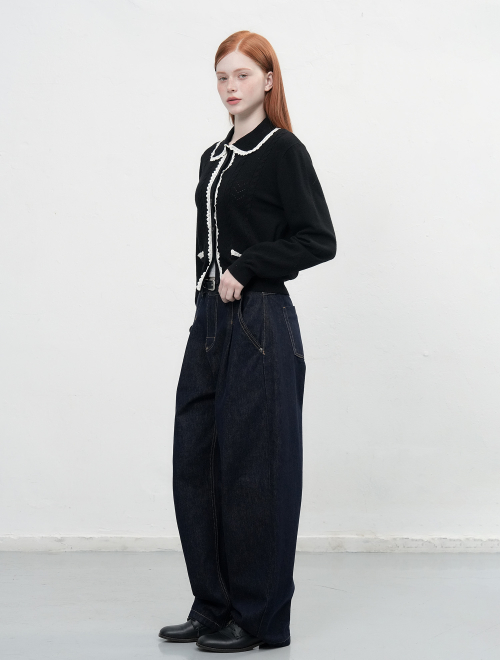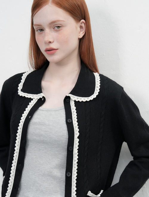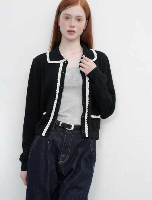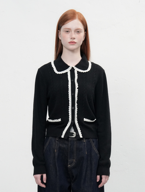 레이스 카라 가디건 [BLACK] / WBE3L04502