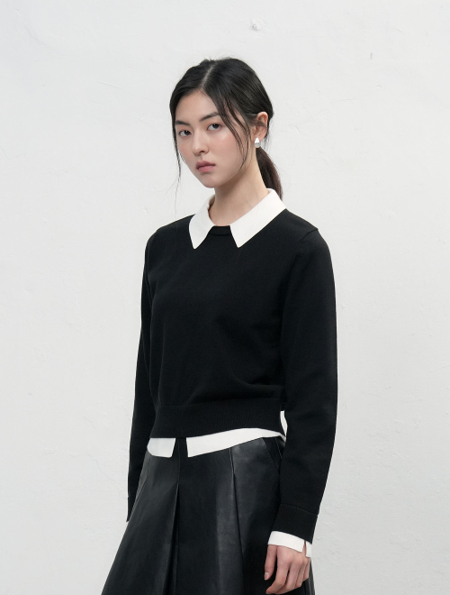 에센셜 카라 레이어드 풀오버 [BLACK] / WBE3L05513