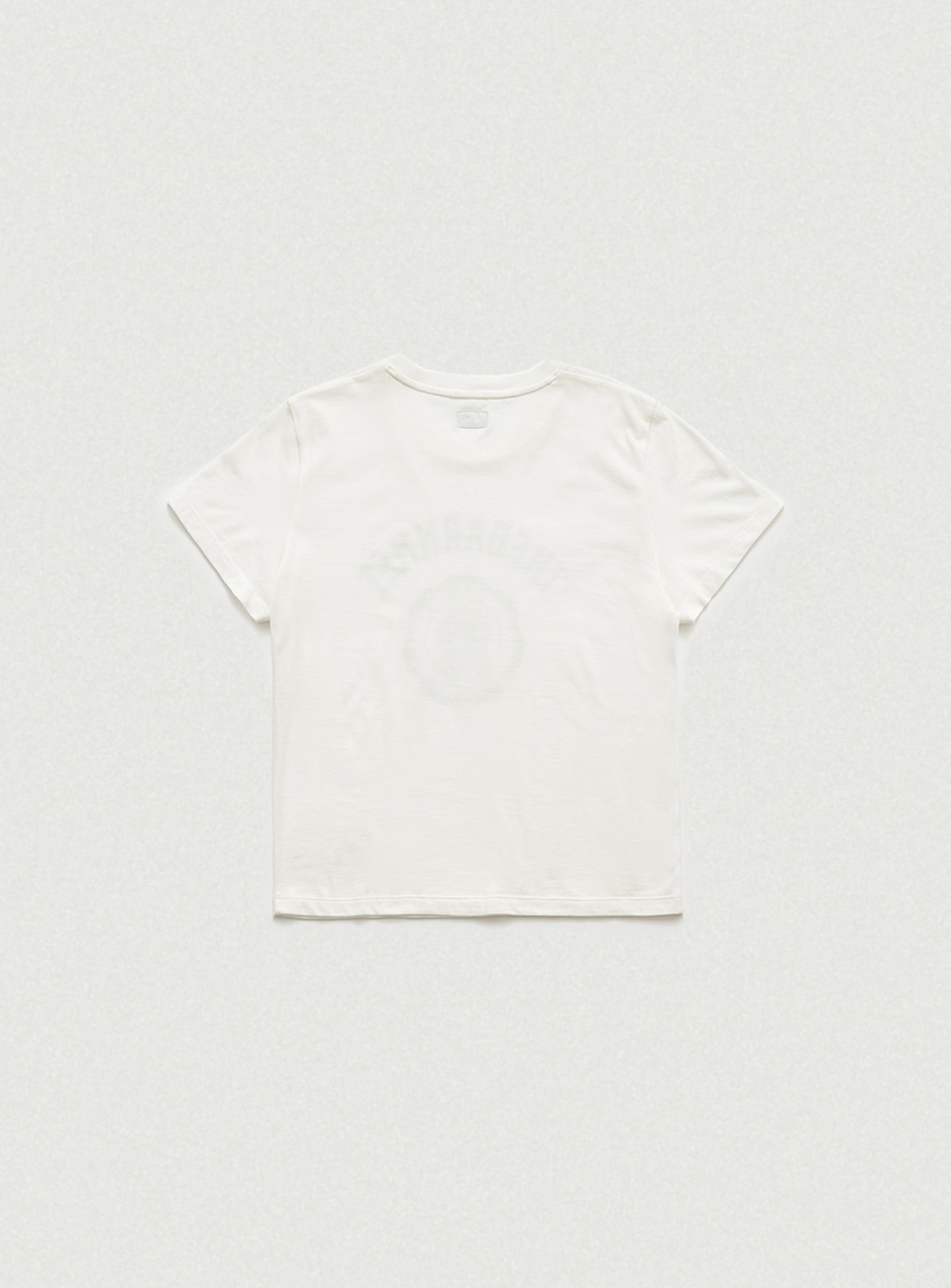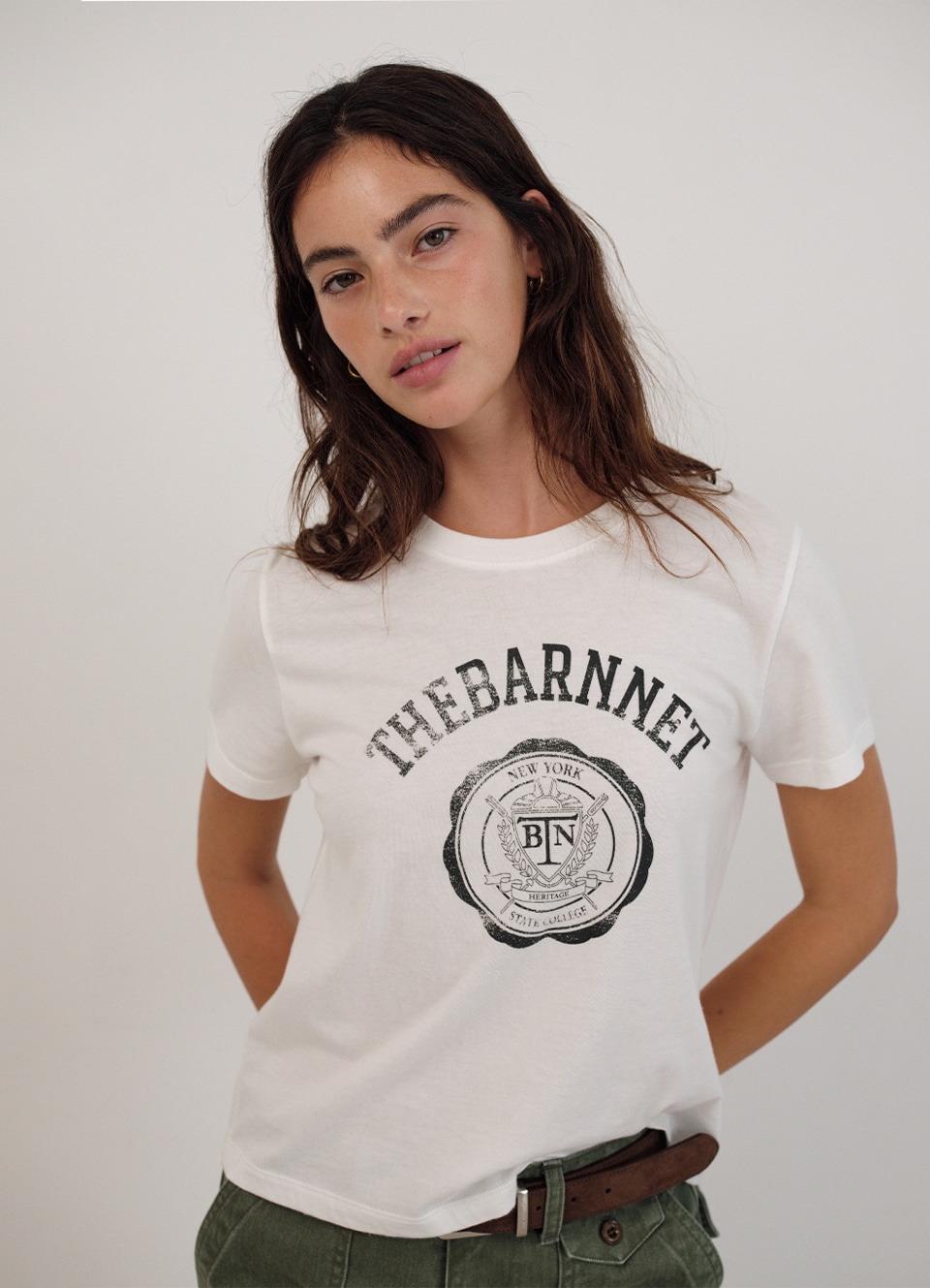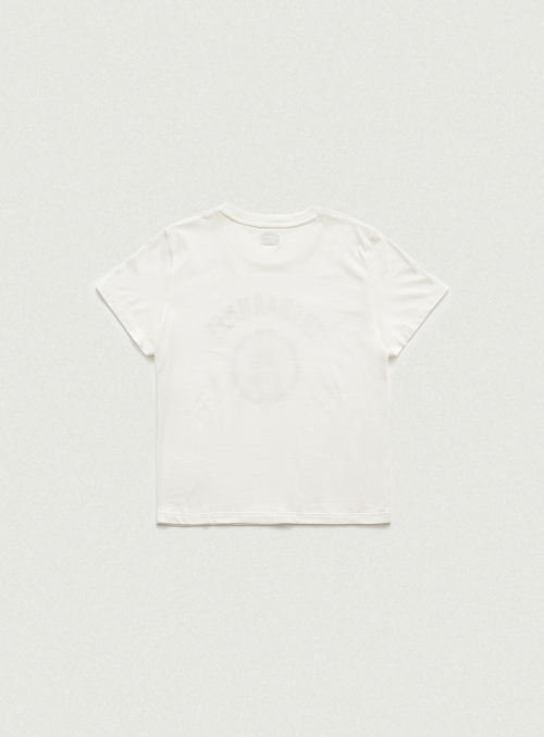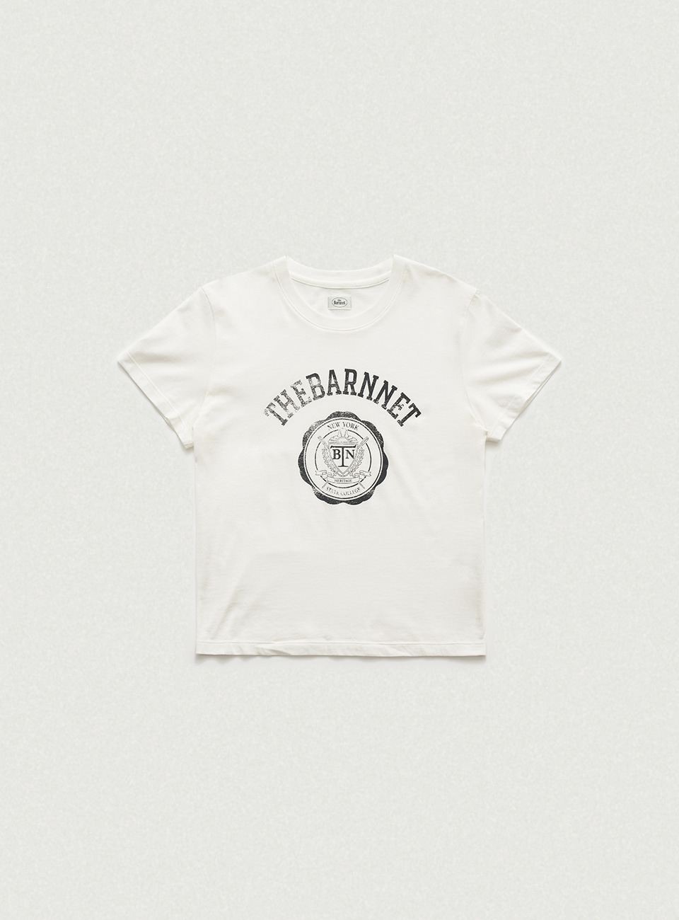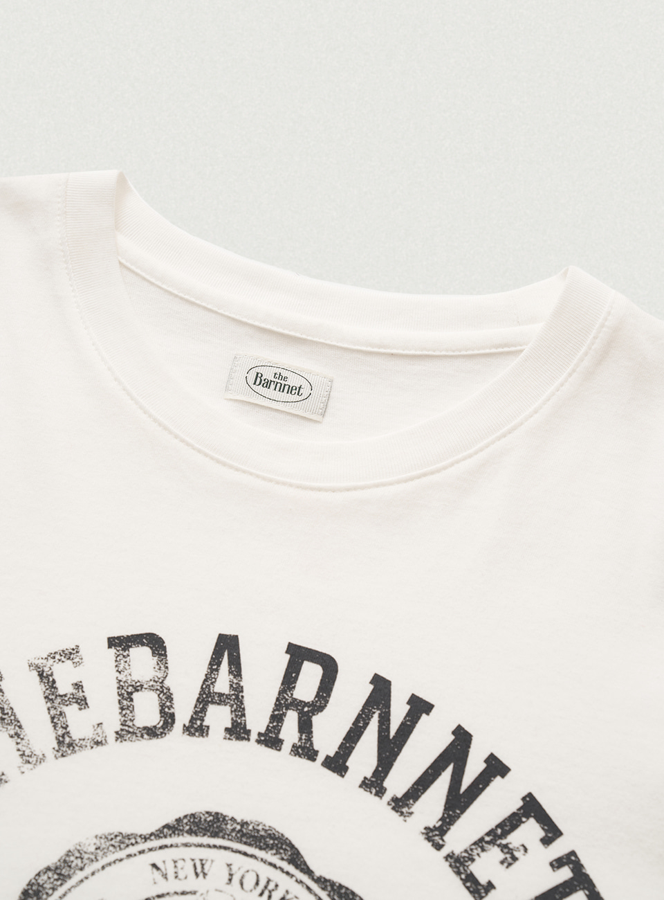 라운드넥과 스탠다드 숄더 그리고 반소매 사양의 티셔츠 타입