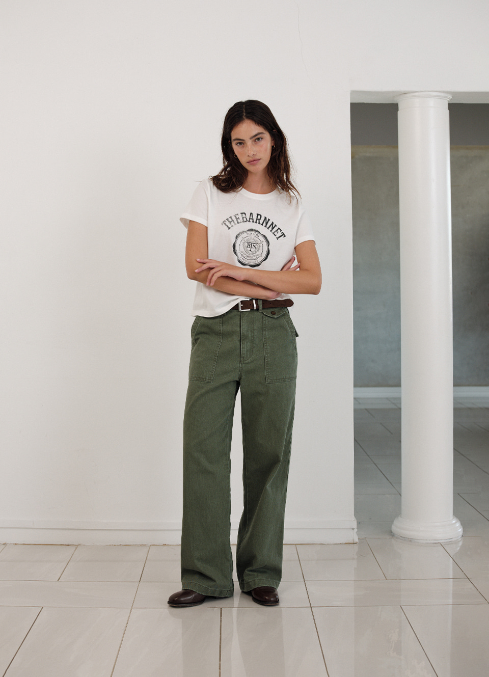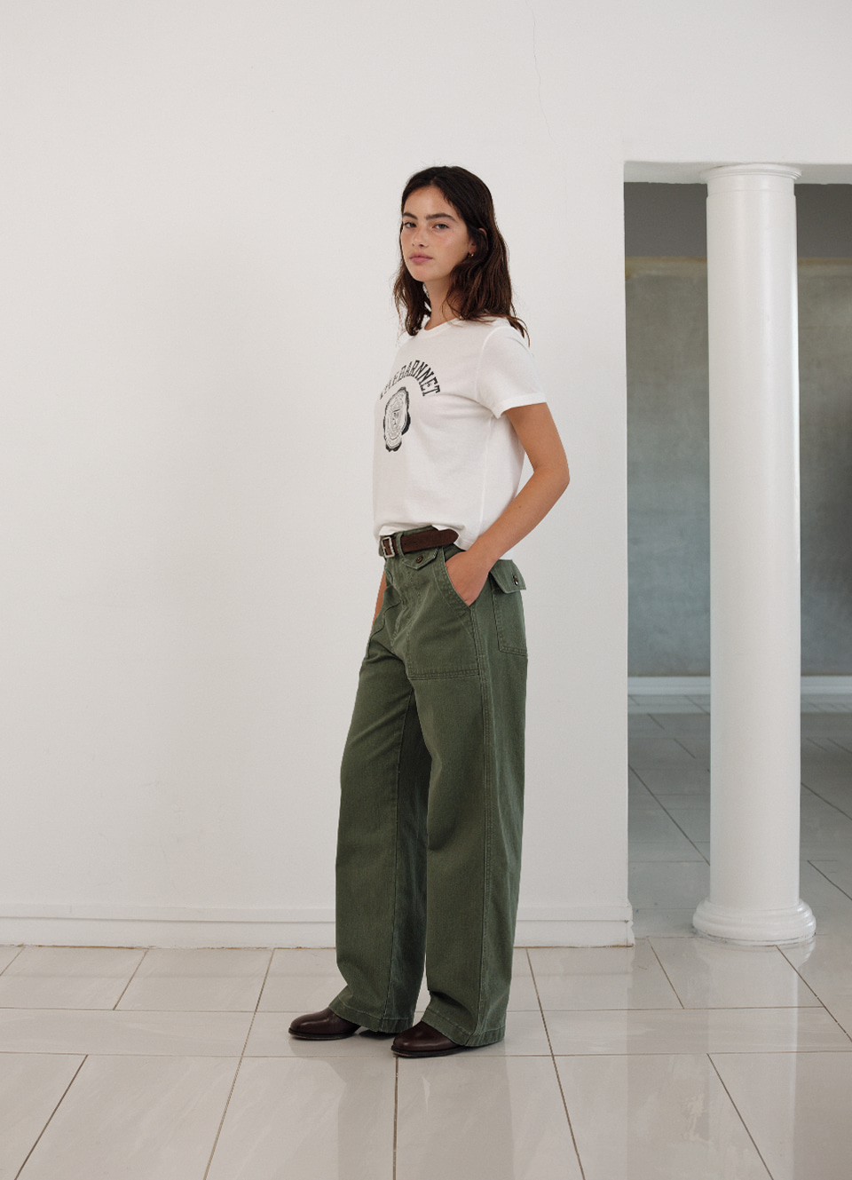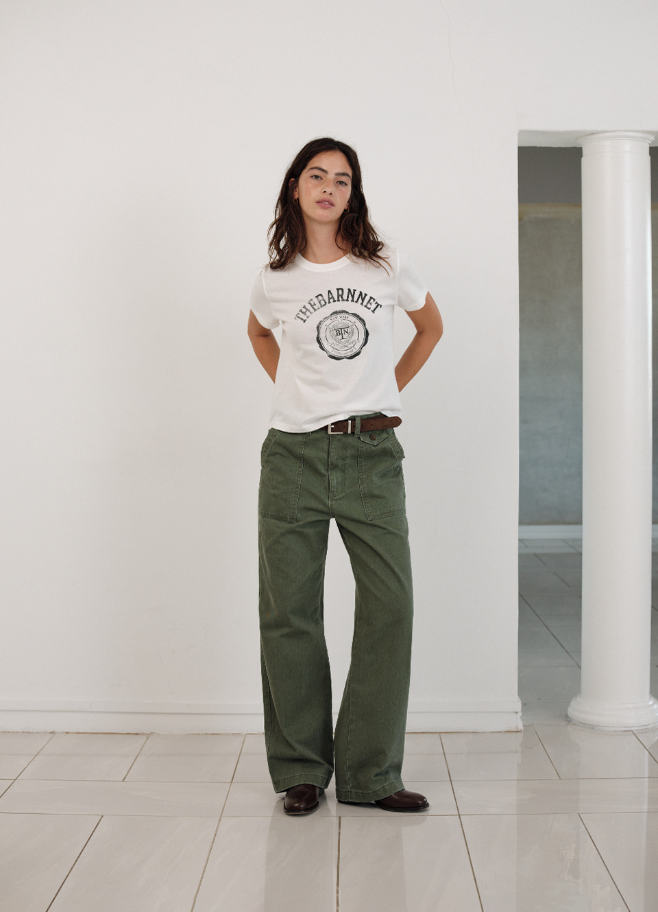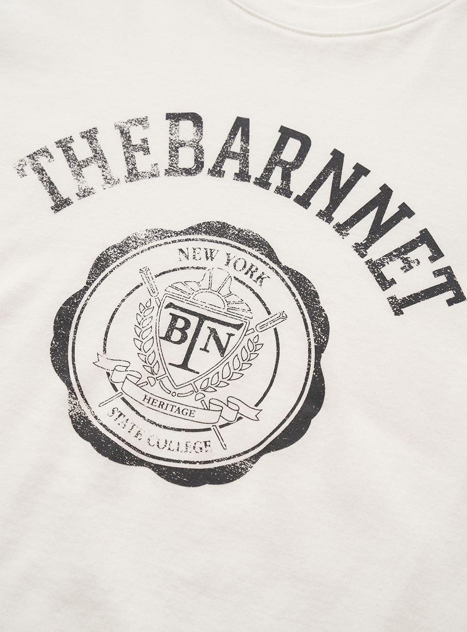 패브릭 컬러와 대비되는 컬러의 로고 자수 프린팅