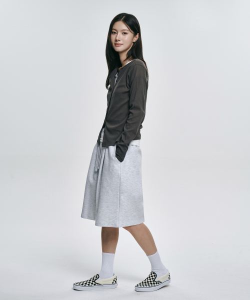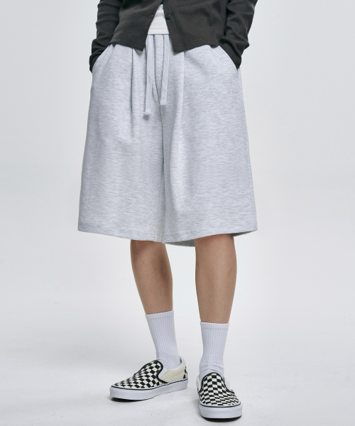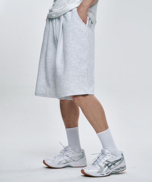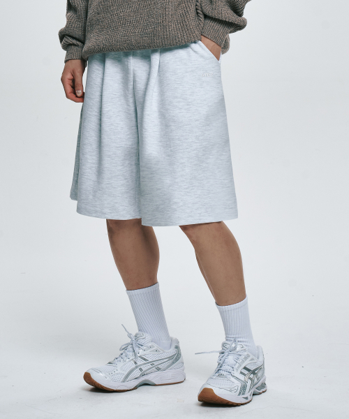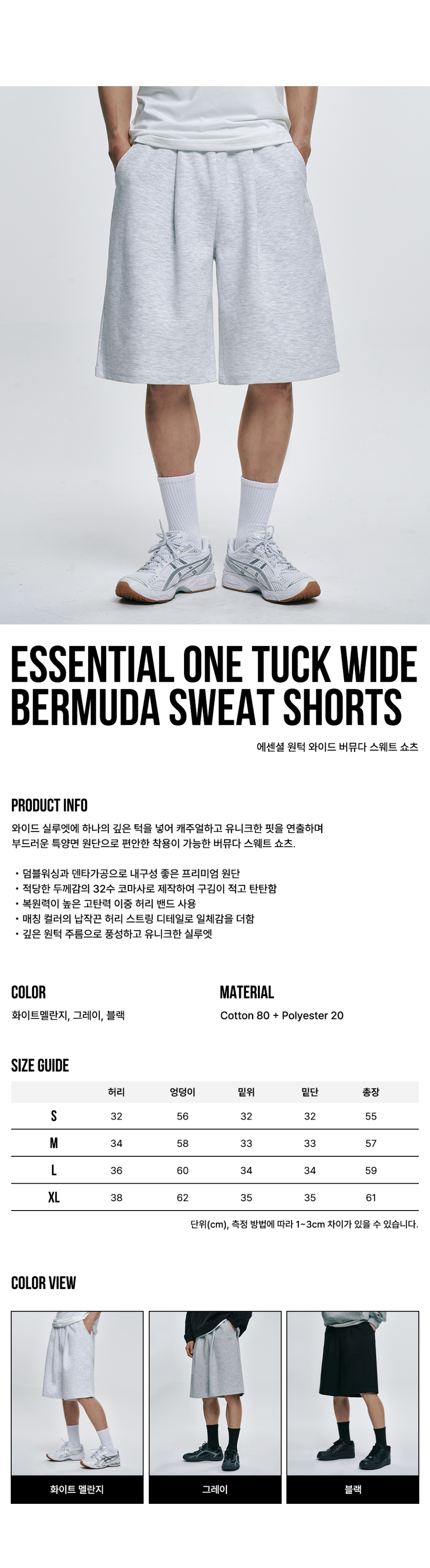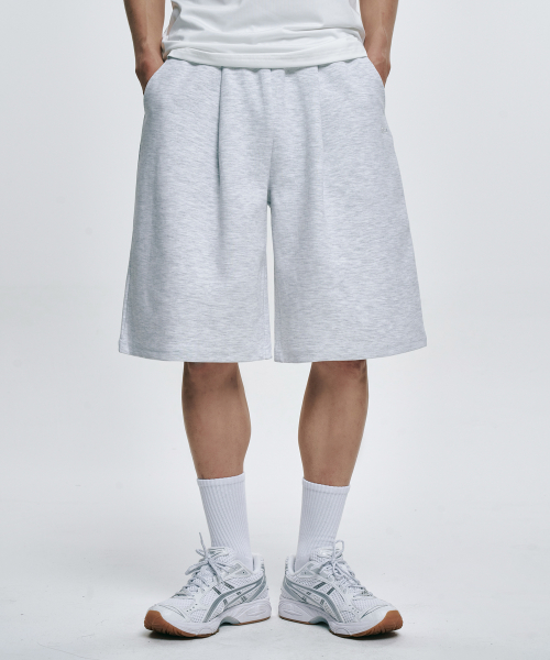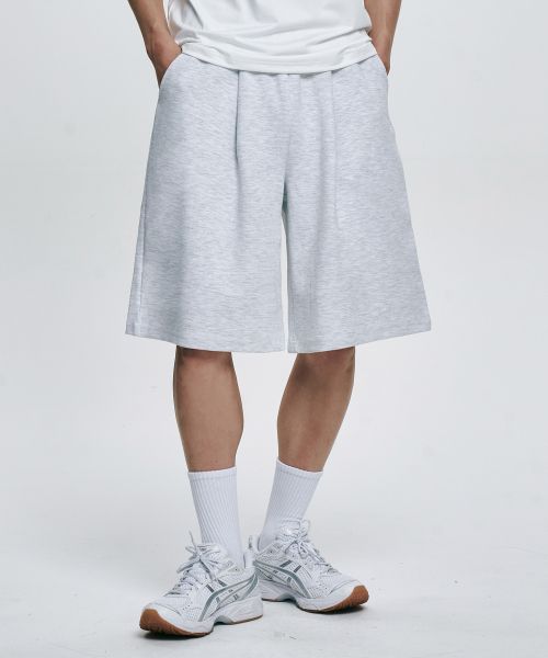 에센셜 원턱 와이드 버뮤다 스웨트 쇼츠 [화이트멜란지]