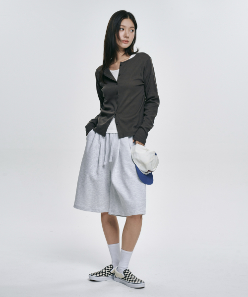 에센셜 원턱 와이드 버뮤다 스웨트 쇼츠 [그레이]