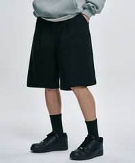 에센셜 원턱 와이드 버뮤다 스웨트 쇼츠 [블랙]