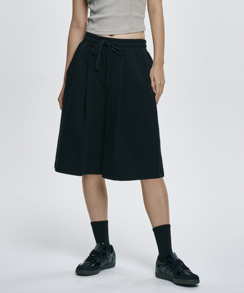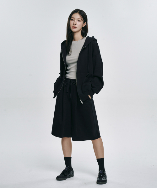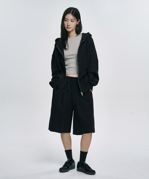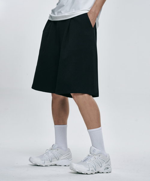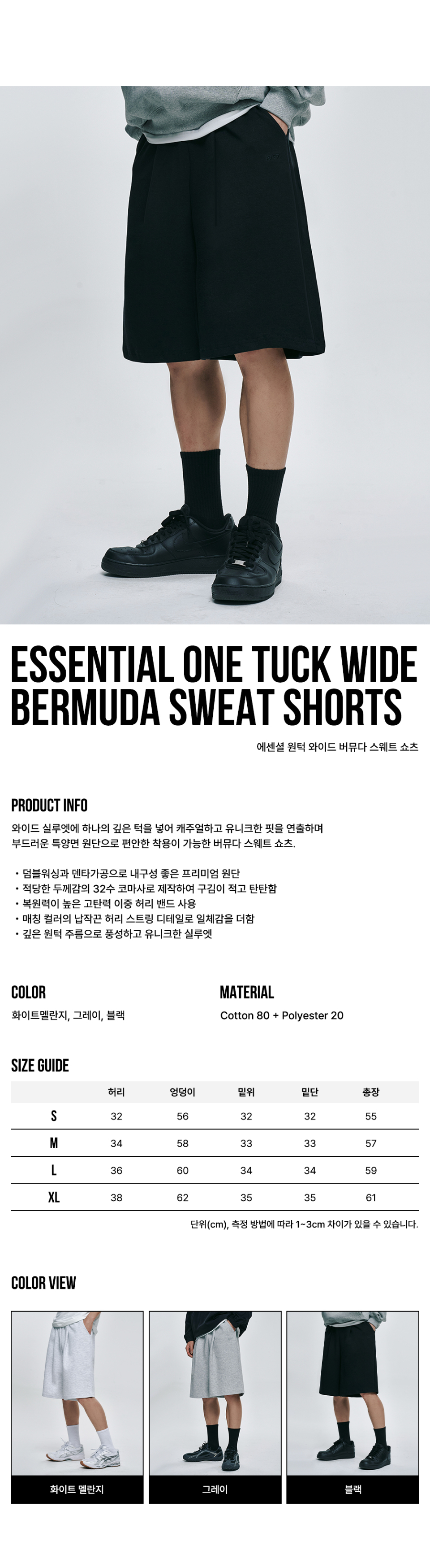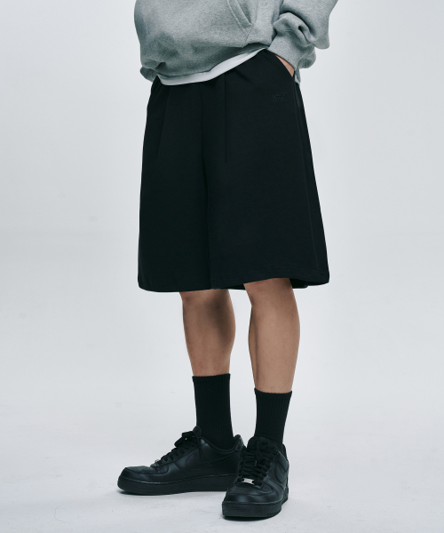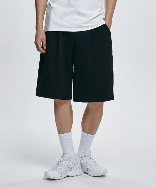 에센셜 원턱 와이드 버뮤다 스웨트 쇼츠 [블랙]
