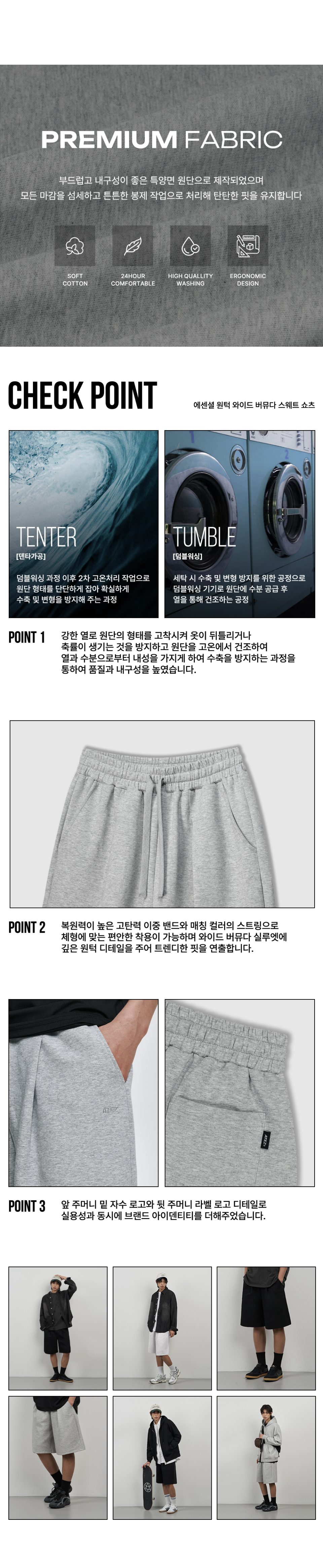 에센셜 원턱 와이드 버뮤다 스웨트 쇼츠 [그레이]