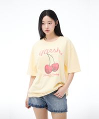 체리 그래픽 루즈핏 티셔츠 [옐로우]