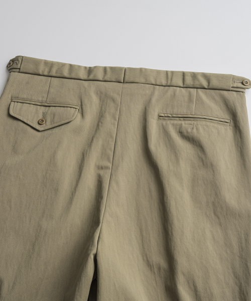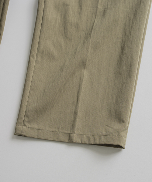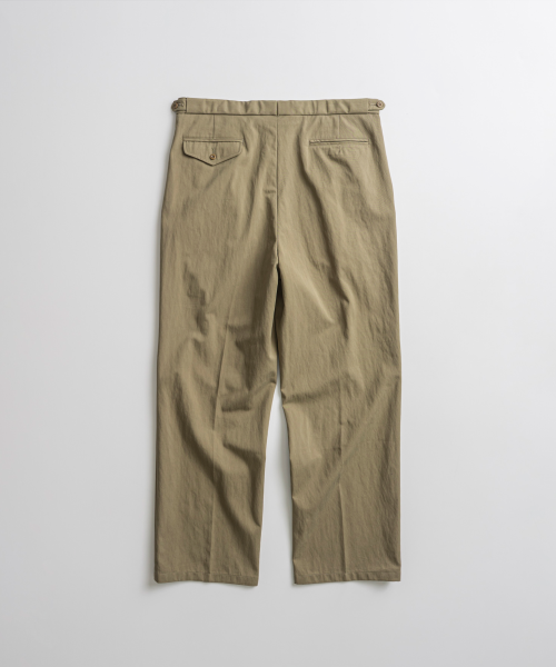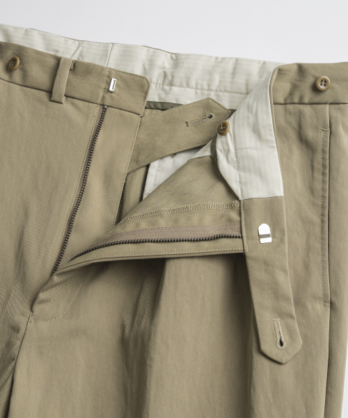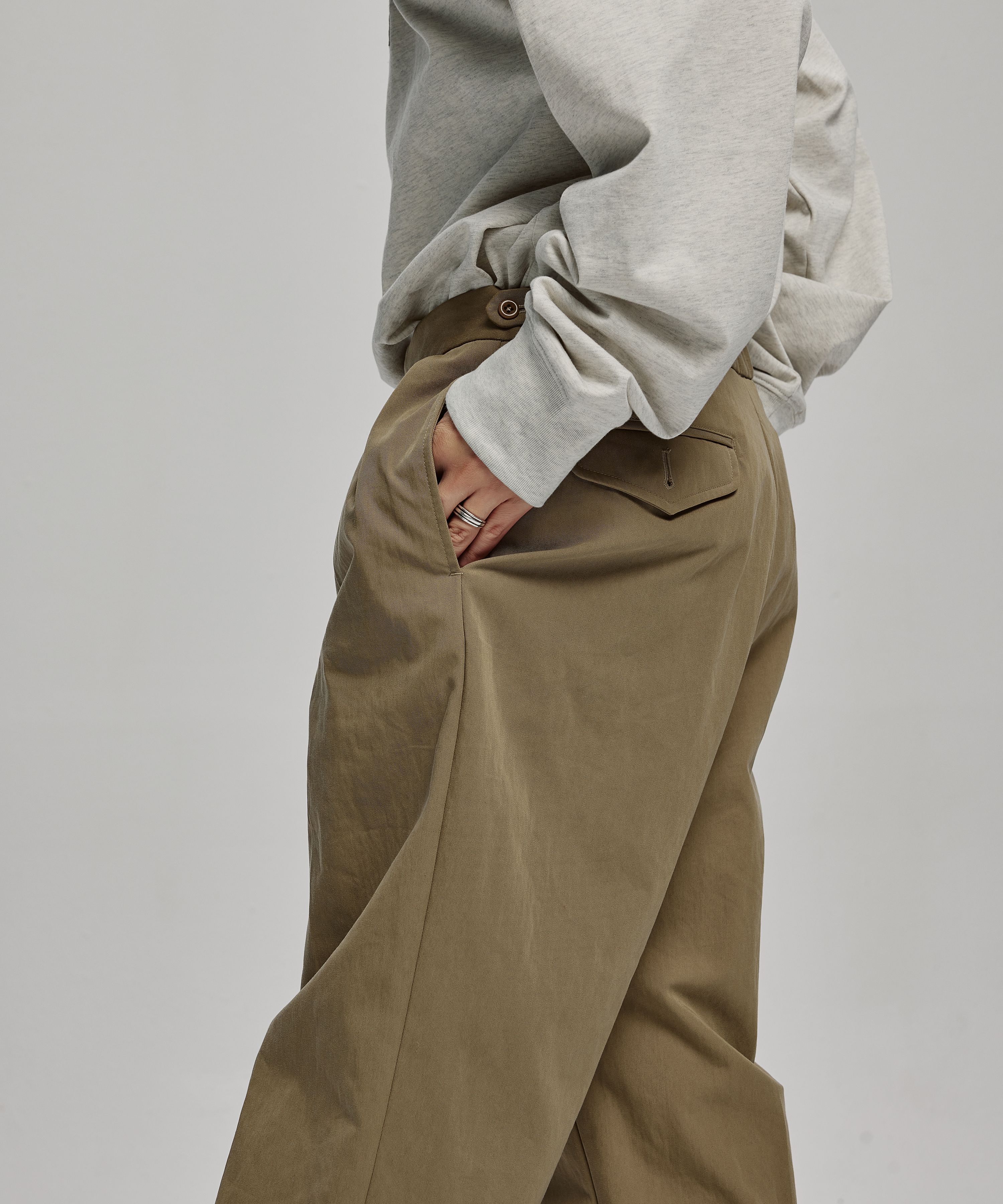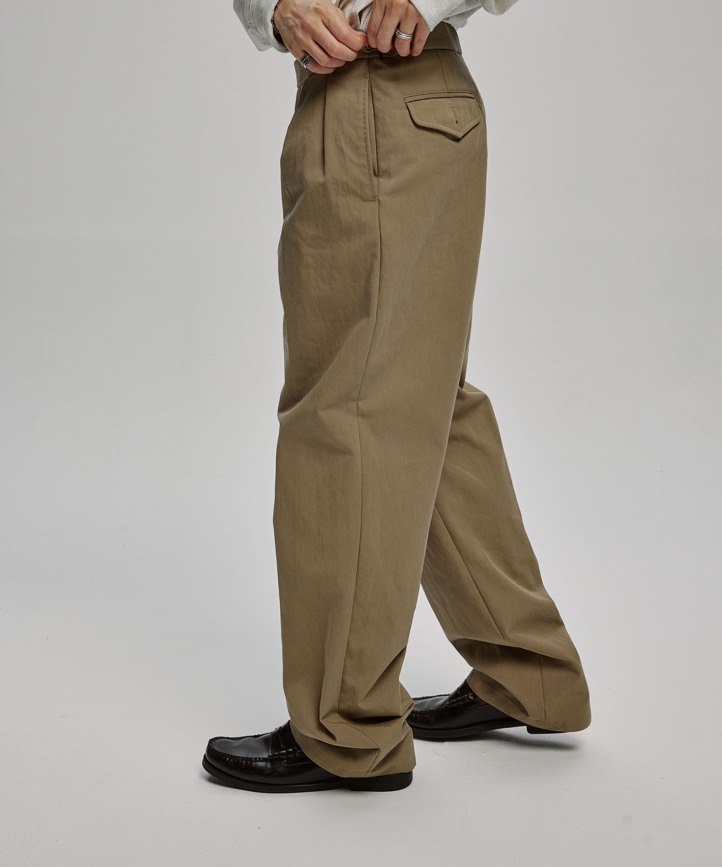 레직기 처리된 전면의 깊은 투 턱(2 Pleats)과 봉제선을 최대한 드러내지 않는 방식이 더해져, 한층 진중한 무드를 연출합니다.