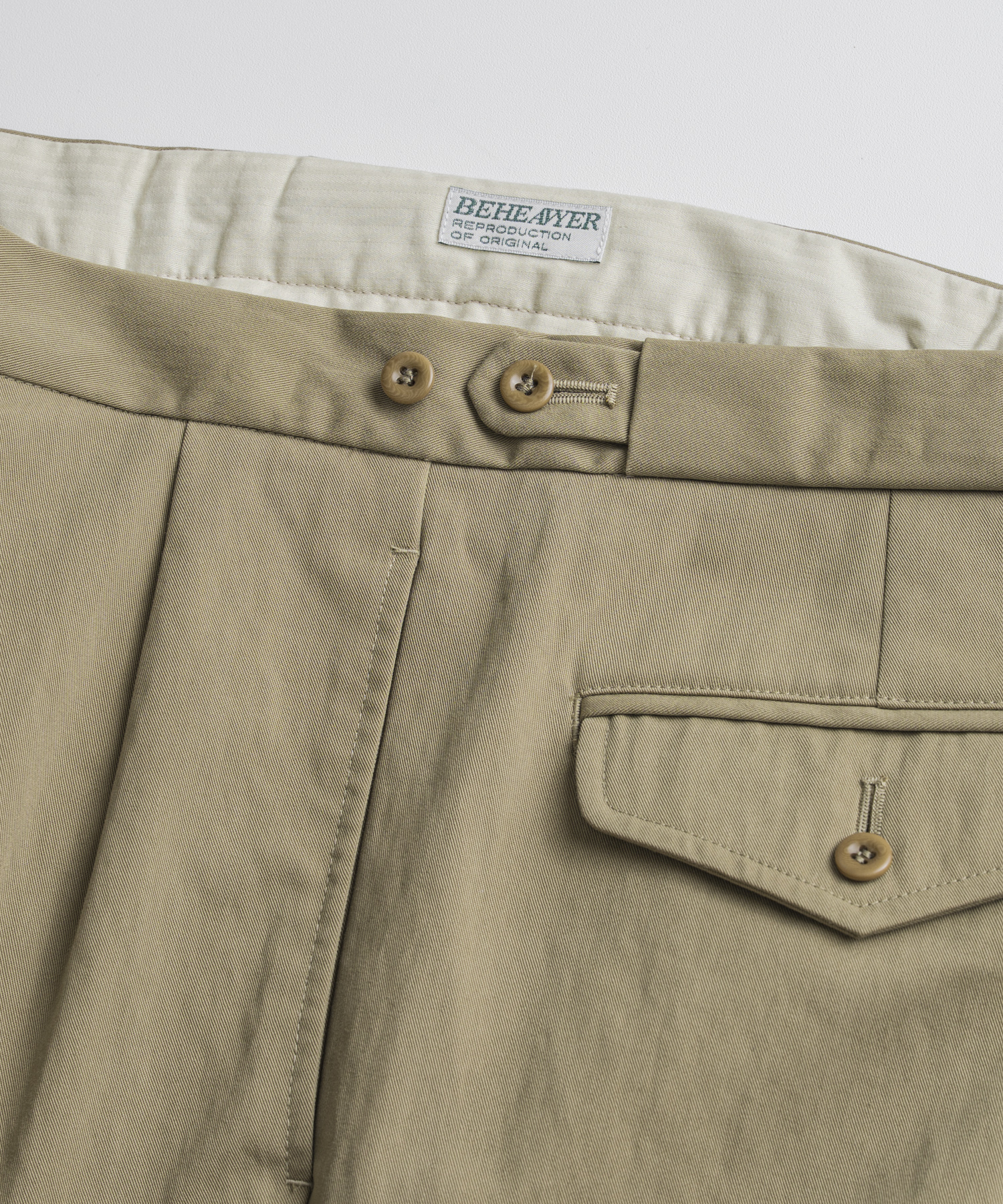 C/N DOUBLE PLEATS EASY TROUSER는 빈티지 트라우저를 모티브로, 비헤비어만의 시선으로 재해석한 팬츠입니다.
