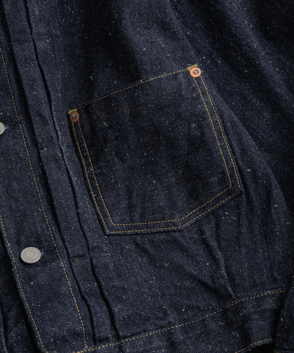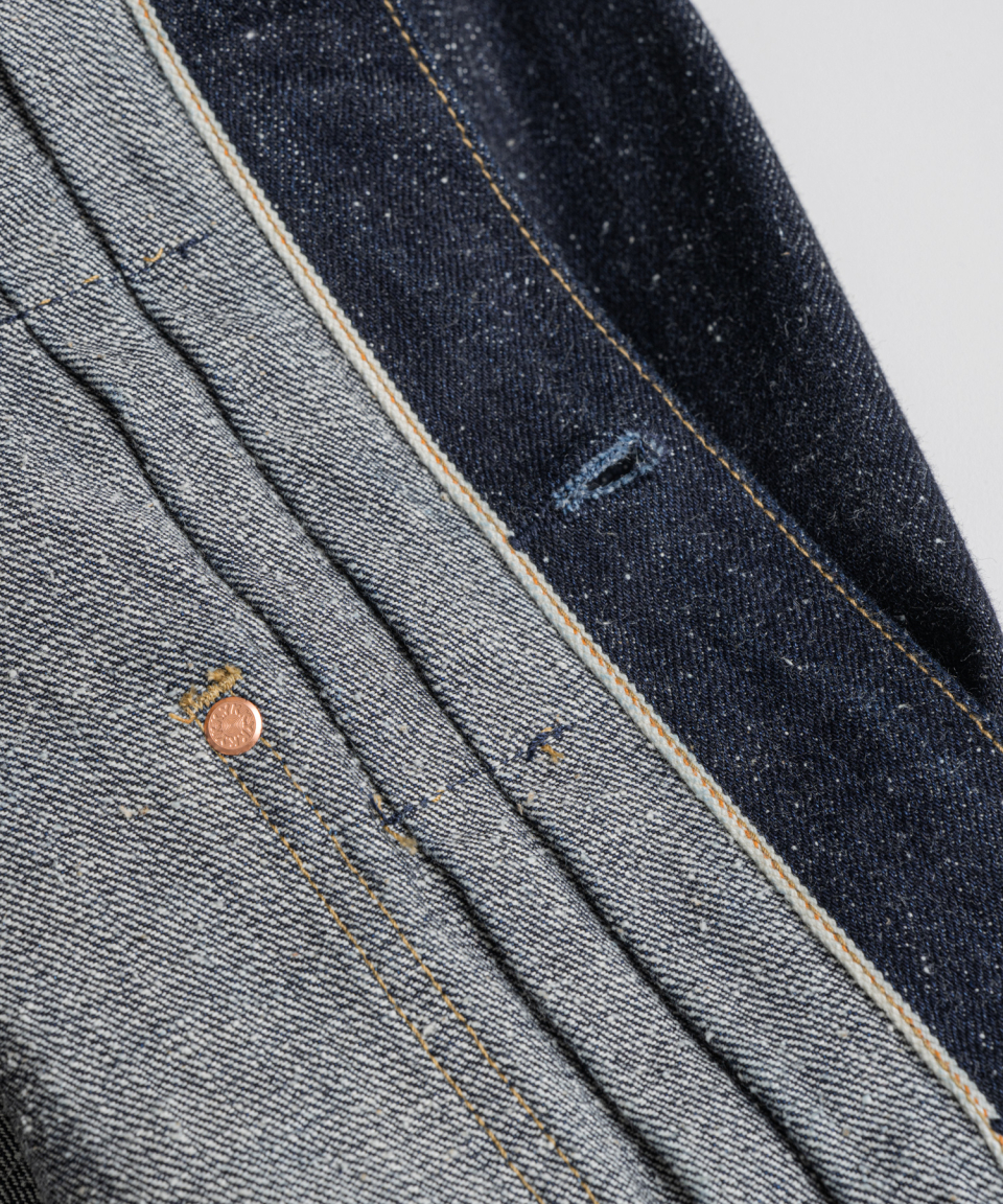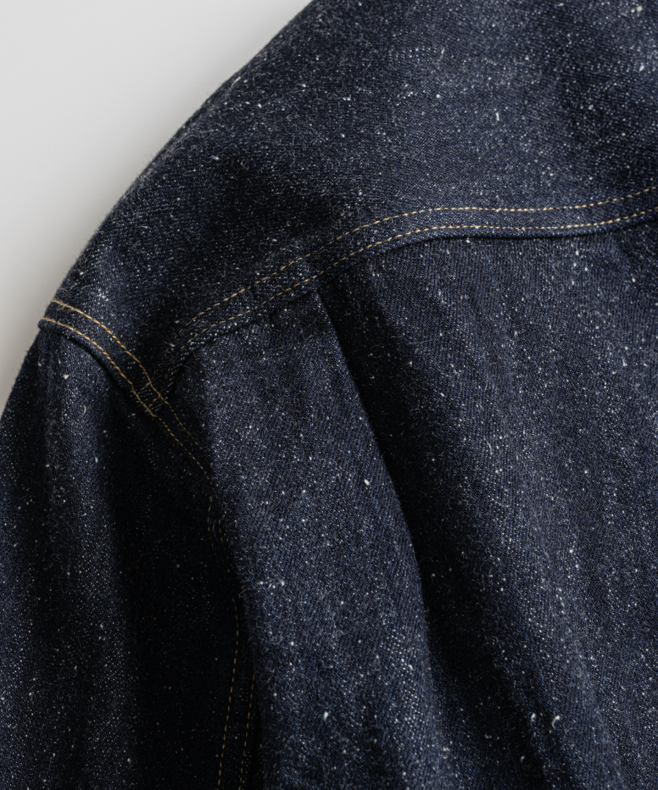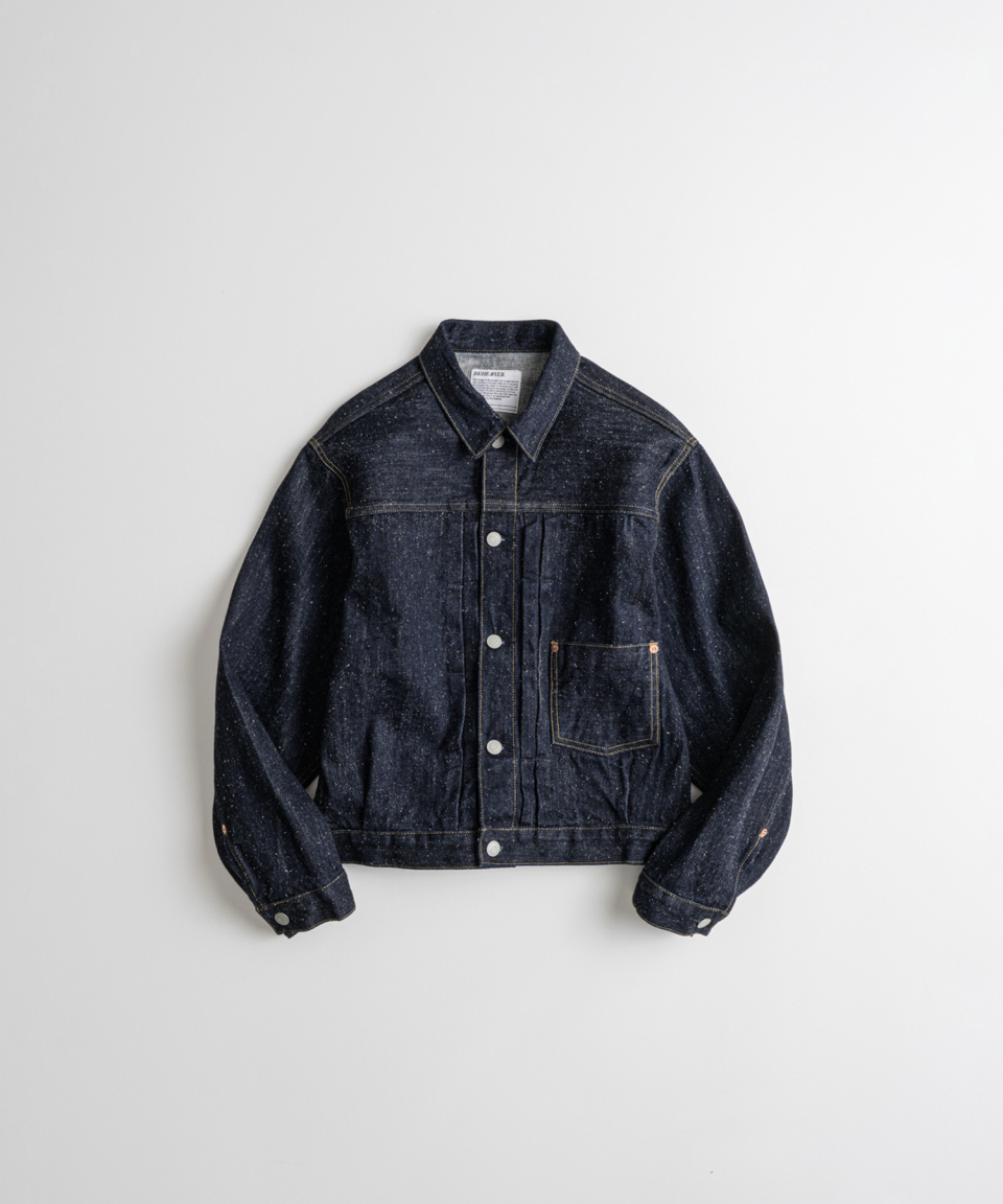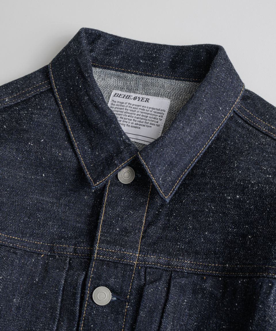 TYPE-1 NEP DENIM JACKET은 1905년 시작된 데님 자켓의 원류를 비헤비어만의 감각으로 재현한 15oz 셀비지 데님 자켓입니다.
