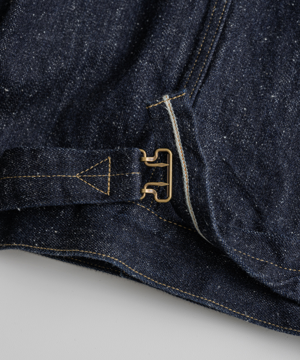 플랩 없는 싱글 포켓과 아이코닉한 TYPE-1의 실루엣을 충실히 반영했으며, 아웃포켓 안쪽과 플라켓 끝단은 셀비지로 마감했습니다. 또한 힘을 많이 받는 구간에는 체인 스티치를 적용해 내구성을 높였습니다.