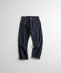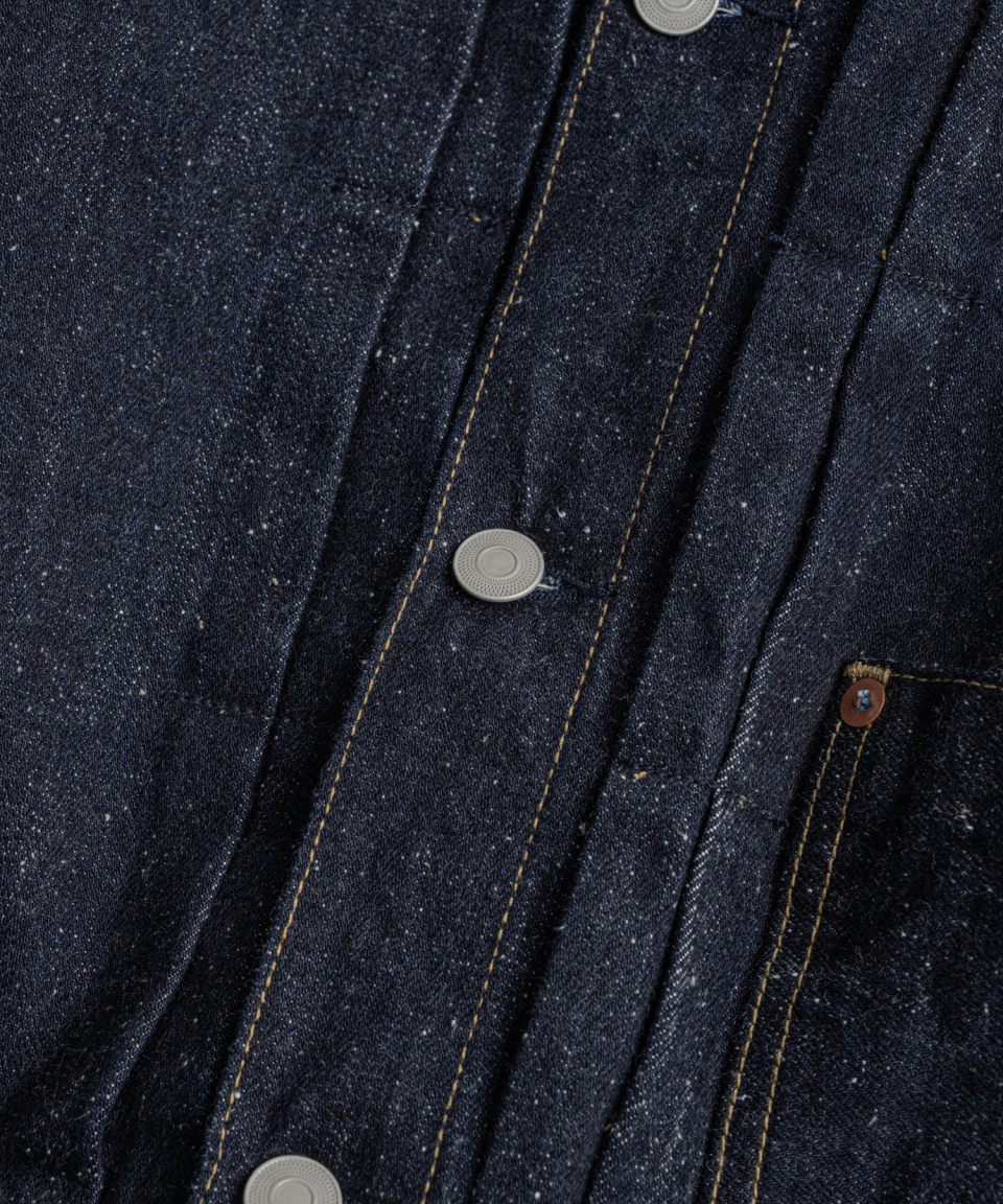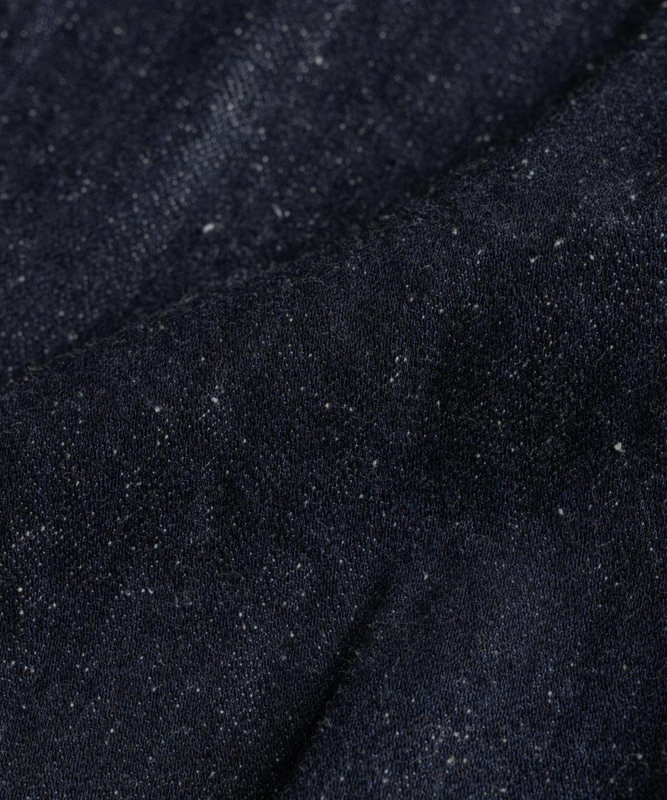 NEP이 강하게 드러나는 원단을 사용해 원 워시 공정을 거쳤으며, 그 결과 헤어리한 질감과 15oz 대비 유연한 착용감이 특징입니다.