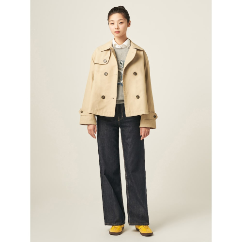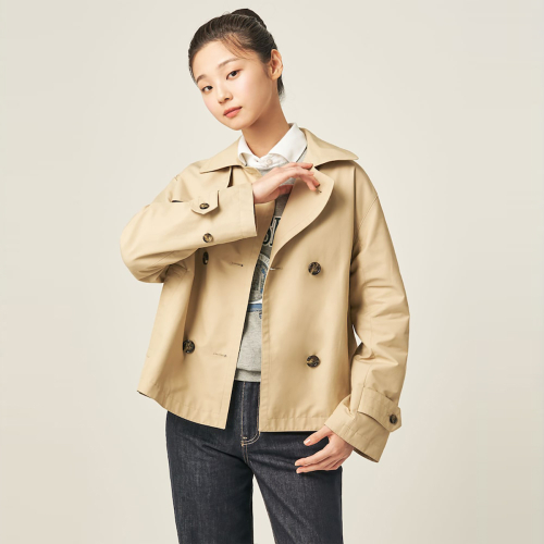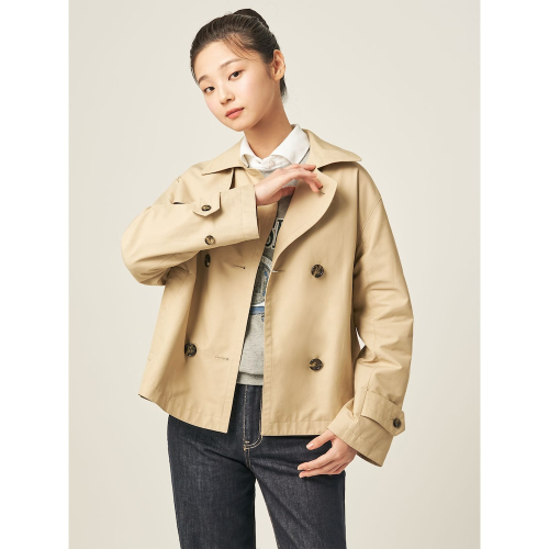 트렌치 디테일을 이용한 짧은 기장의 아우터 스타일로, 활동성과 캐주얼한 무드가 돋보이는 더블 버튼 트렌치 재킷입니다. 포멀룩부터 캐주얼룩까지 다양한 스타일에 연출하기 좋습니다. 가볍게 매치하기 쉬워 가을철 자주 손이 가게 될 소장 가치 높은 아이템입니다.