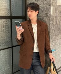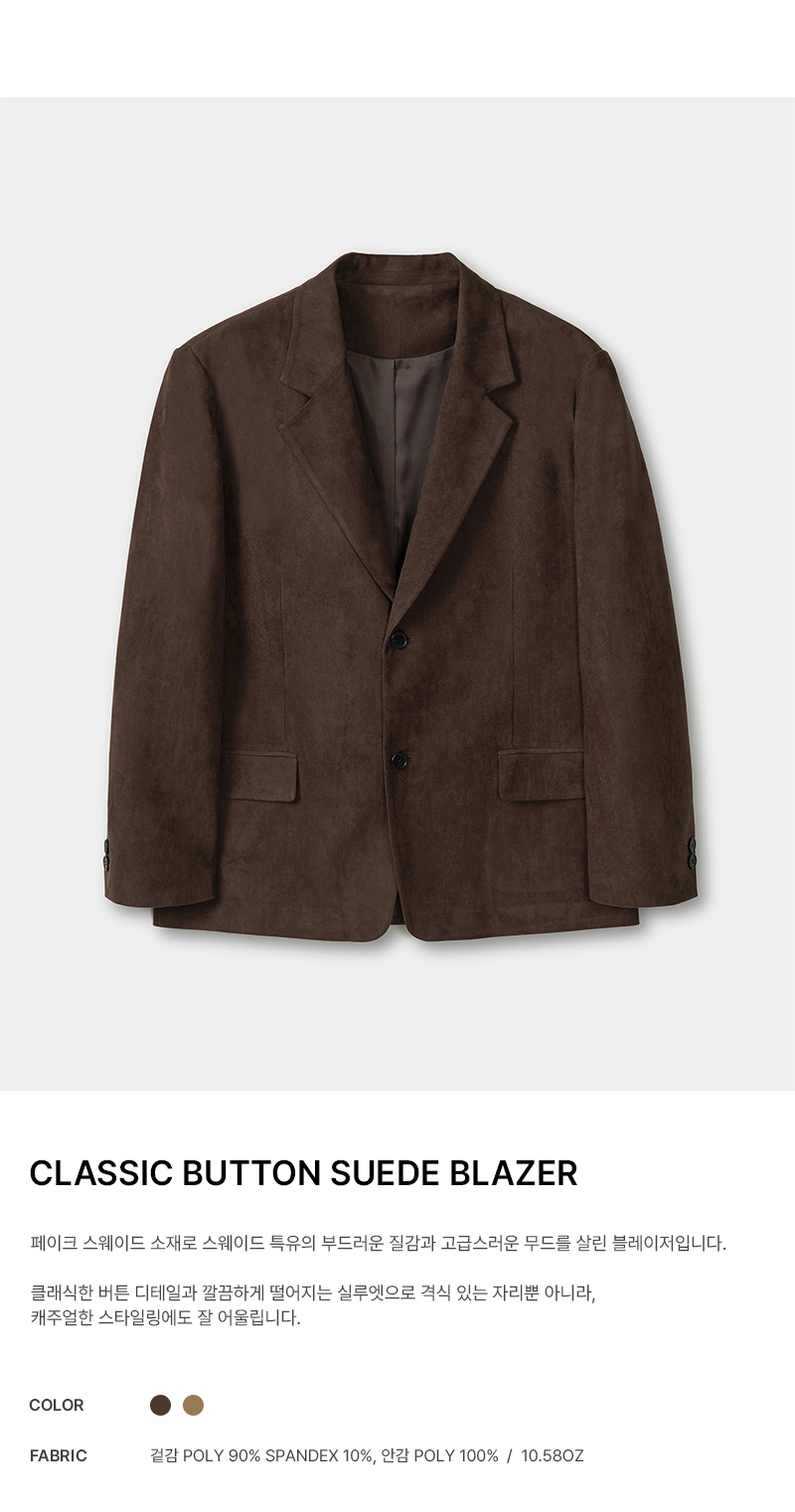 클래식 버튼 스웨이드 블레이저 (DARK BROWN)