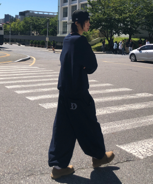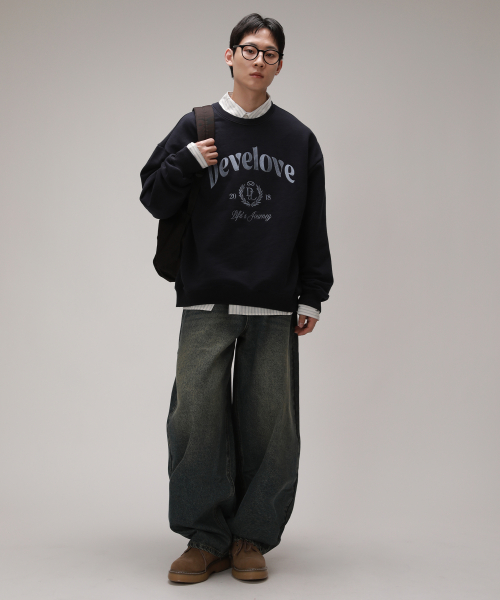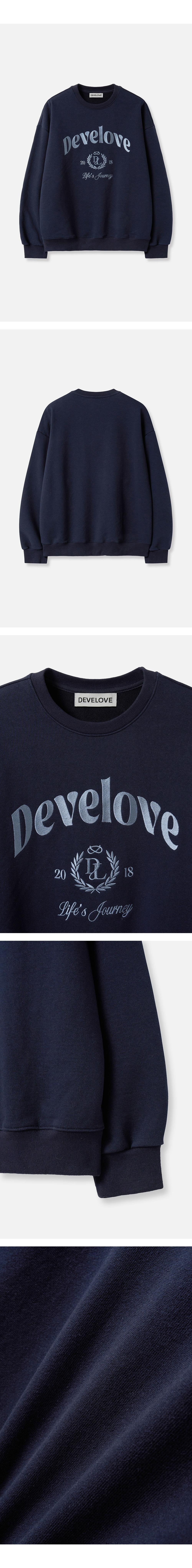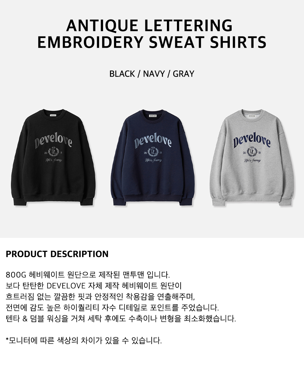 엔티크 레터링 자수 맨투맨_네이비