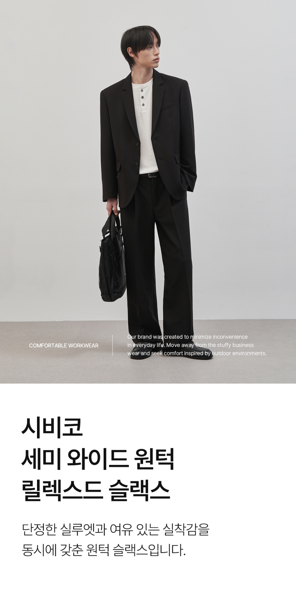 시비코 세미 와이드 원턱 릴렉스드 슬랙스 [블랙]