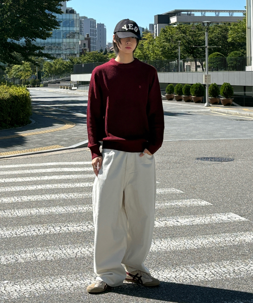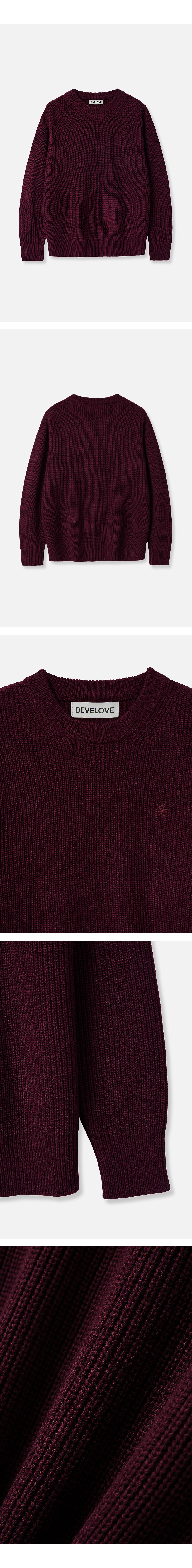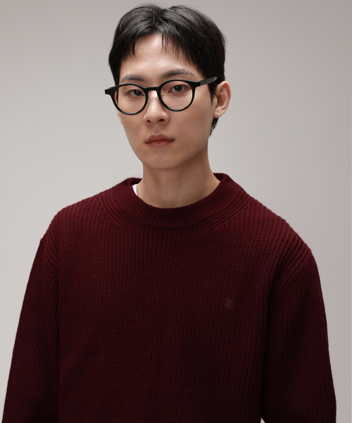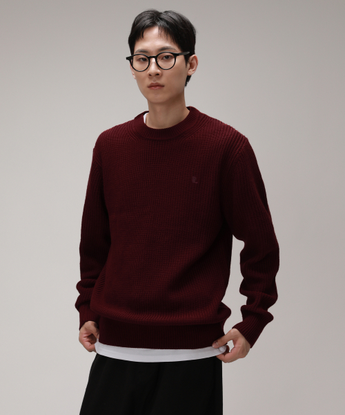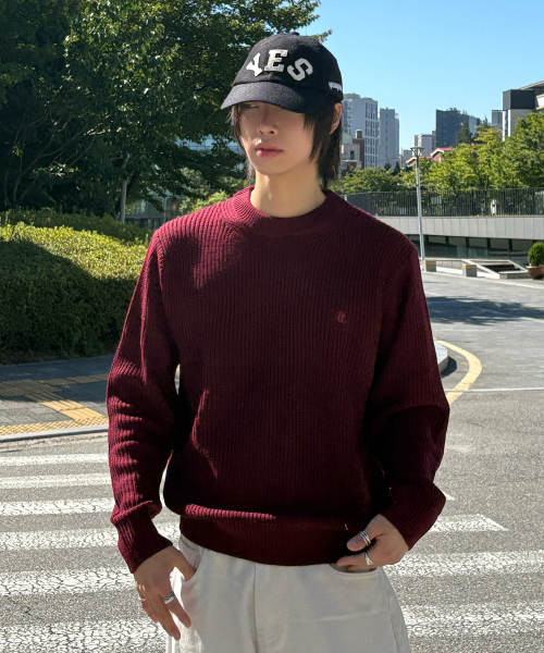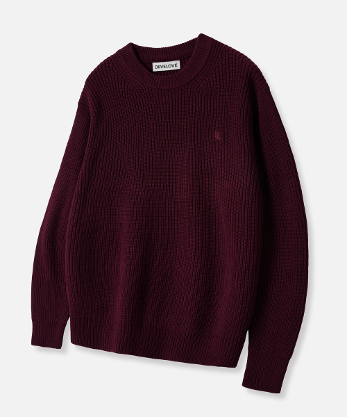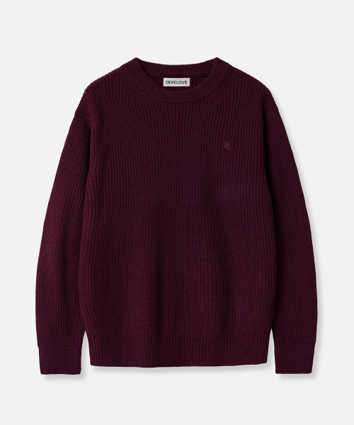 코튼 리브드 크루 넥 니트 [버건디]