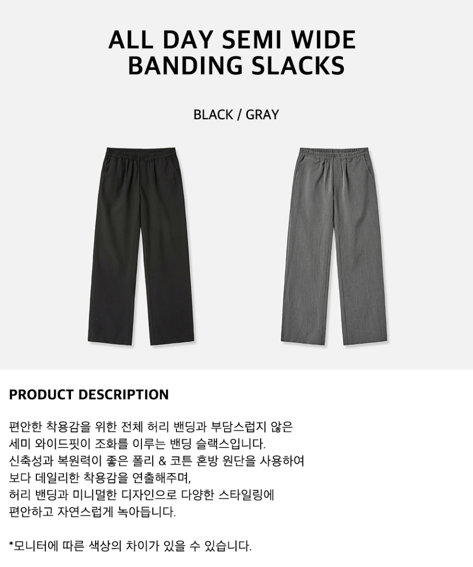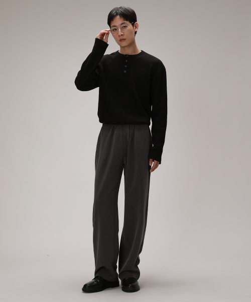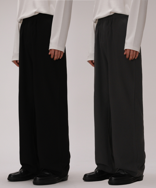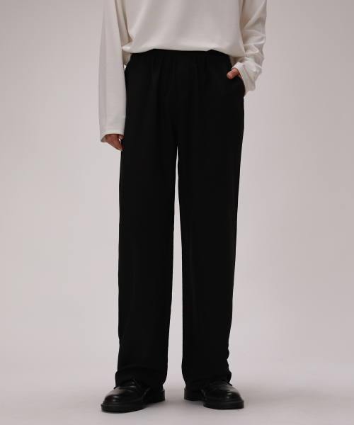 에센셜 세미 와이드 슬랙스 (BLACK)
