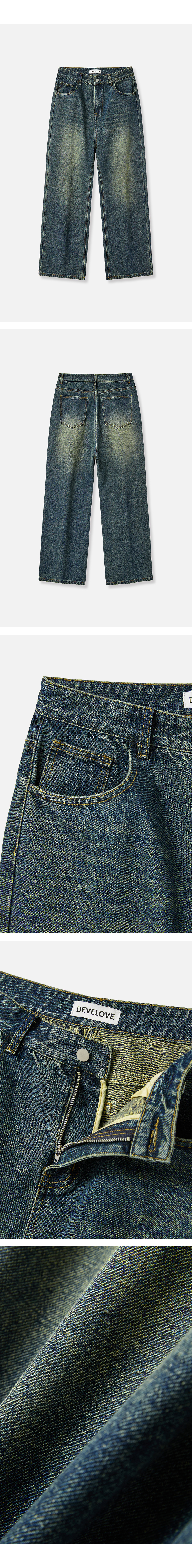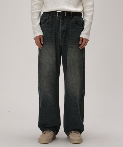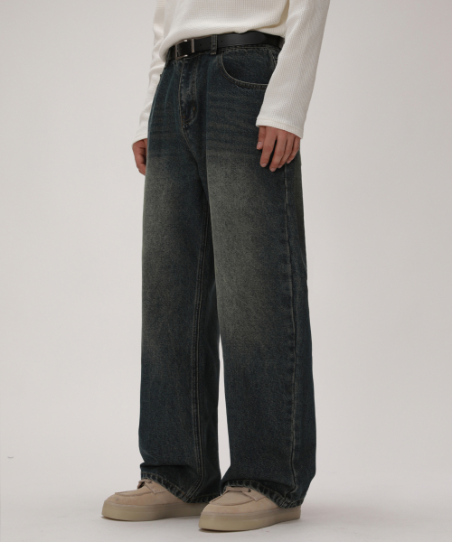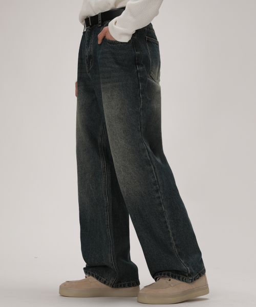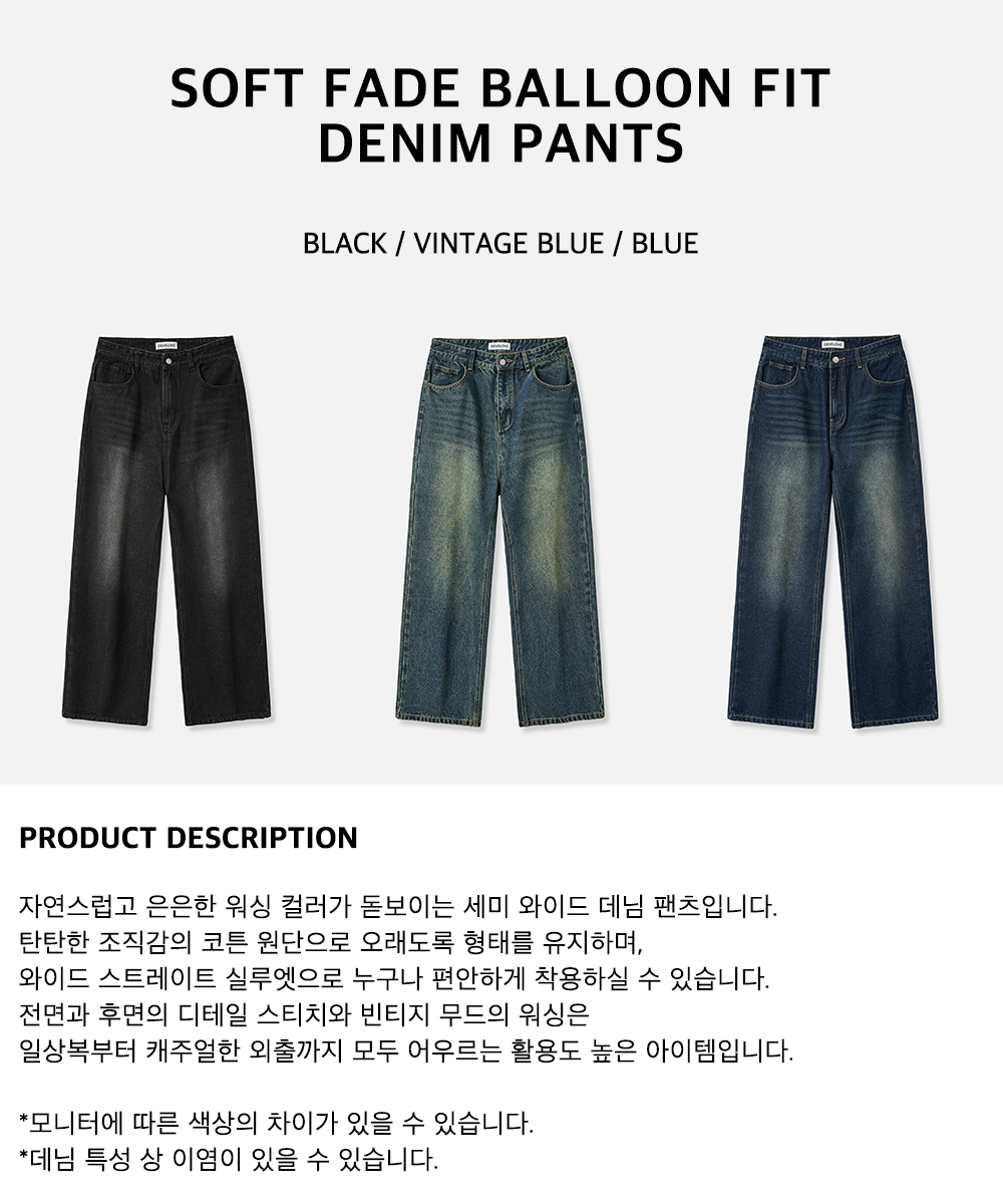 소프트 페이드 세미와이드 데님 팬츠_빈티지 블루