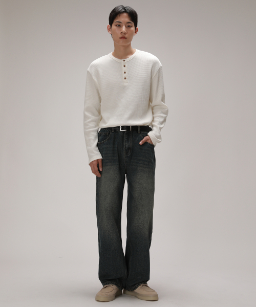 와플 헨리 넥 긴소매 티셔츠 [블랙]
