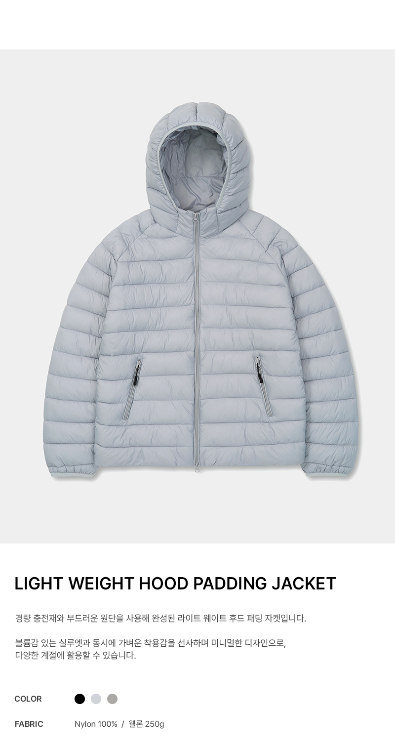 라이트 웨이트 후드 패딩 자켓 (GREY)