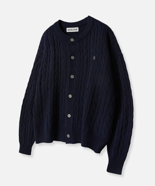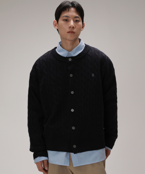 소프트 케이블 라운드 오버핏 가디건_네이비