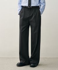 투 턱 와이드 핀 스트라이프 슬랙스 [CHARCOAL]