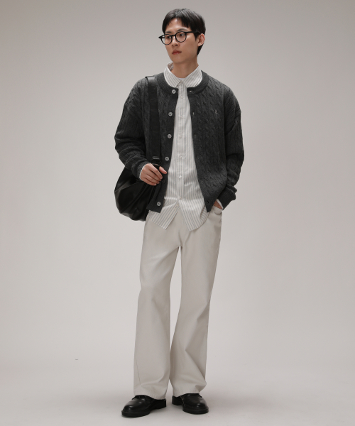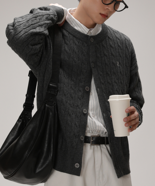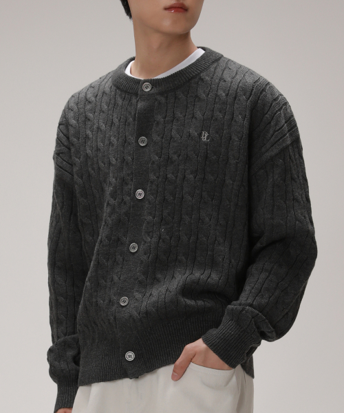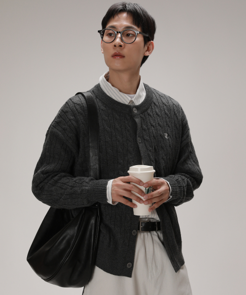 소프트 케이블 라운드 오버핏 가디건_차콜